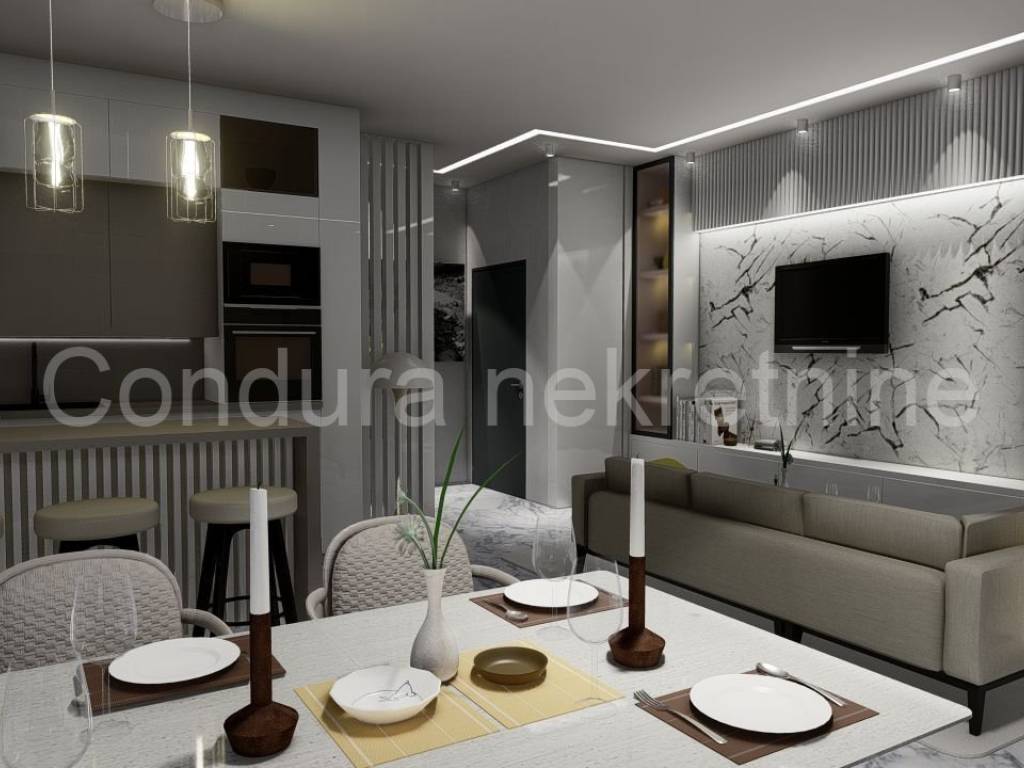 Apartman obiluje prirodnom svjetlošću koju daju prozori od poda do stropa te stvaraju prozračan, svijetao i ugodan ambijent.