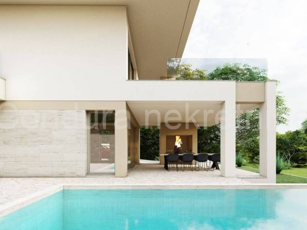 Na prostranoj okućnici dijelom popločanoj, a dijelom uređenoj zelenilom, predviđen je bazen dimenzija 7,6 m x 3,6 m i dubine 150 m. Dva parkirna mjesta također se nalaze ovdje.