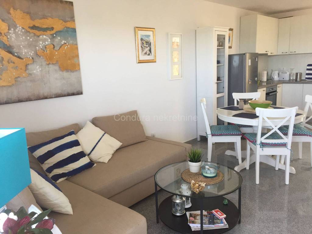 Iz dnevnog boravka izlazi se na balkon s pogledom na more. Također, jedna spavaća soba ima pogled na more.