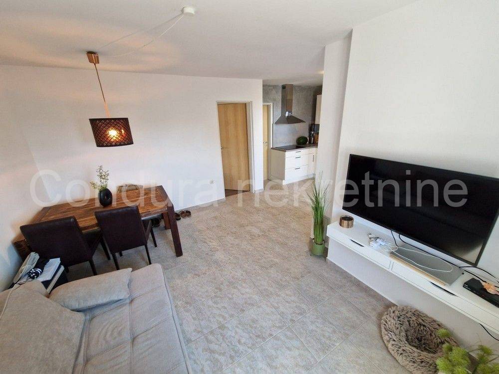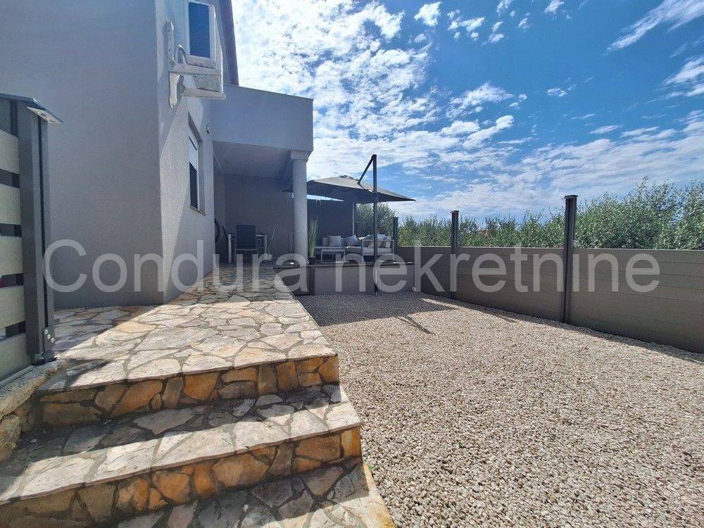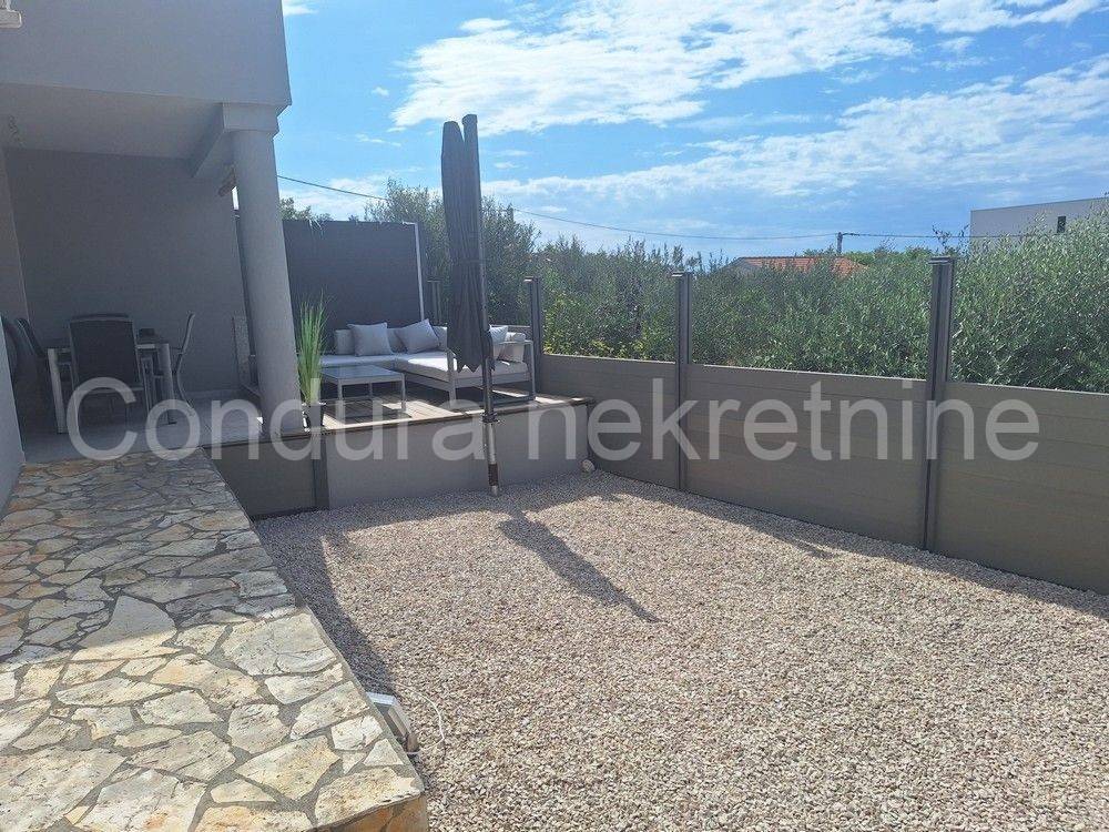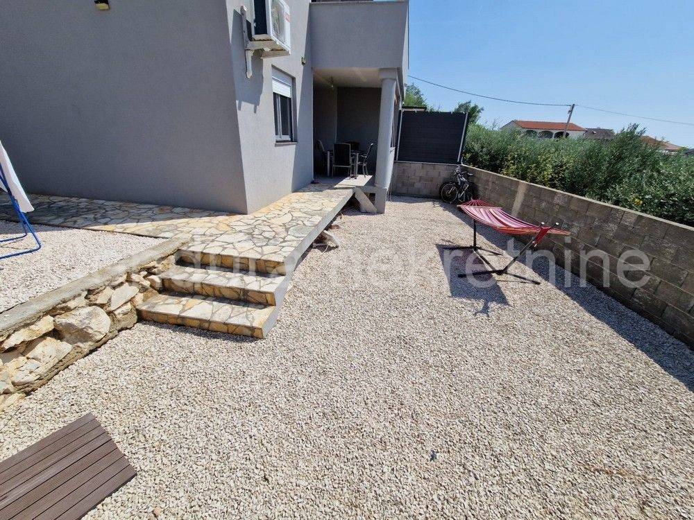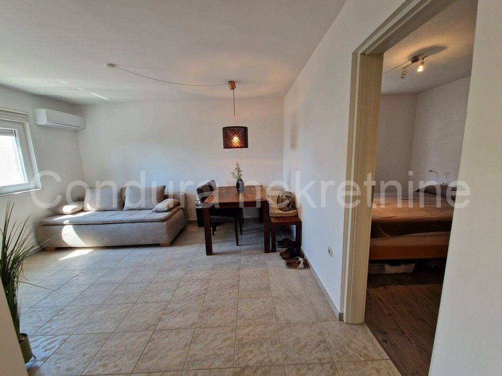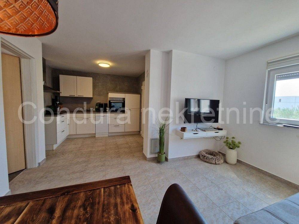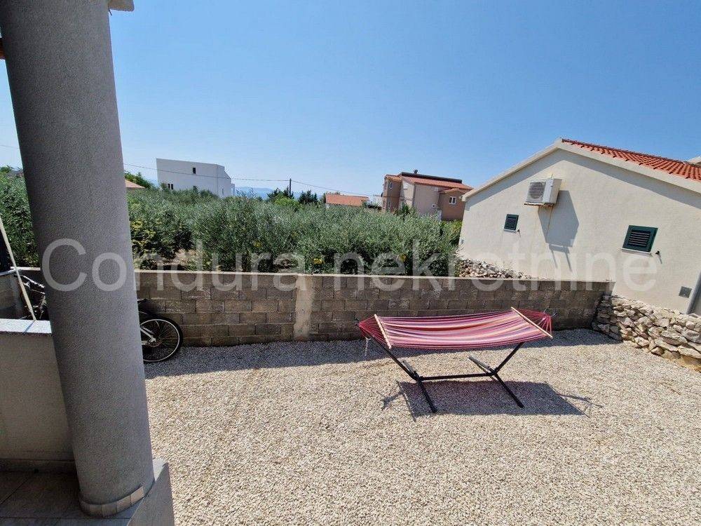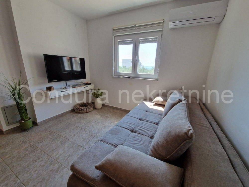 Nalazi se u stambenoj jedinici s ukupno četiri apartmana, u prizemlju, s pogledom na more s vanjske natkrivene terase.