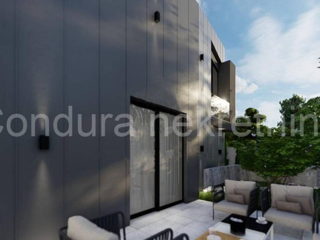 U lijepo uređenom dvorištu površine 361 m2, dijelom popločanom, a dijelom uređenom biljkama nalaze se dva parkirna mjesta.
