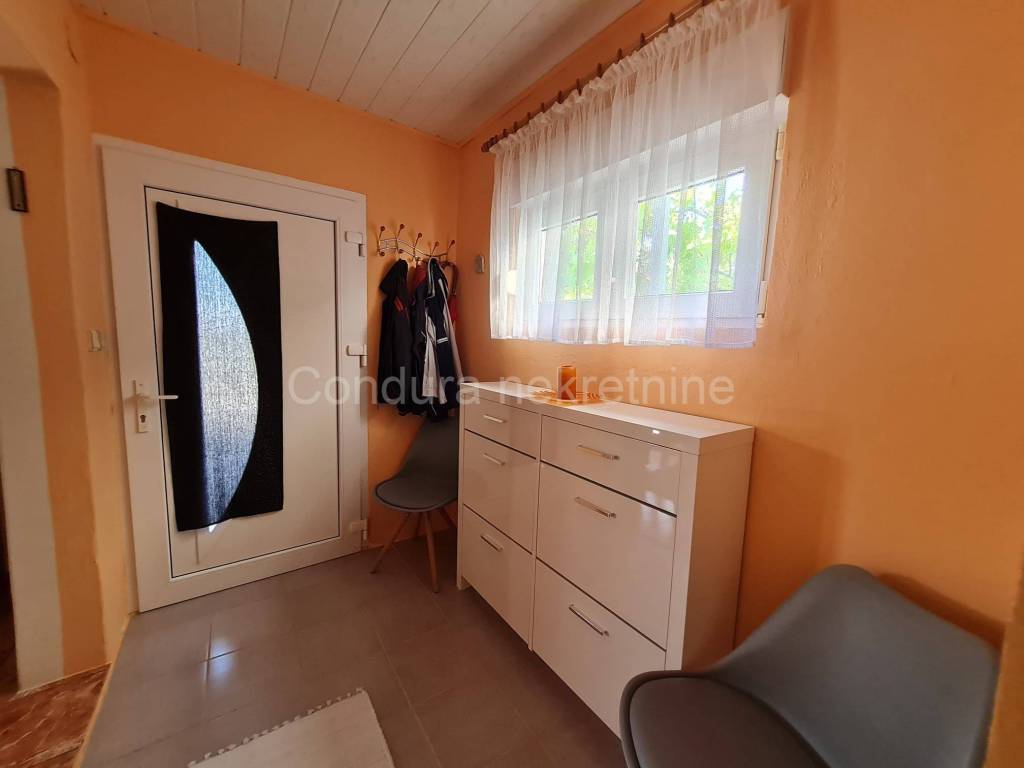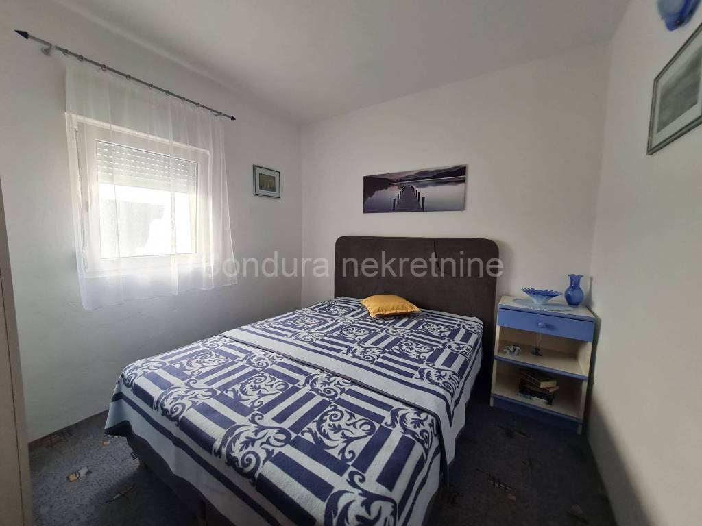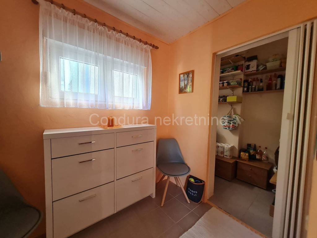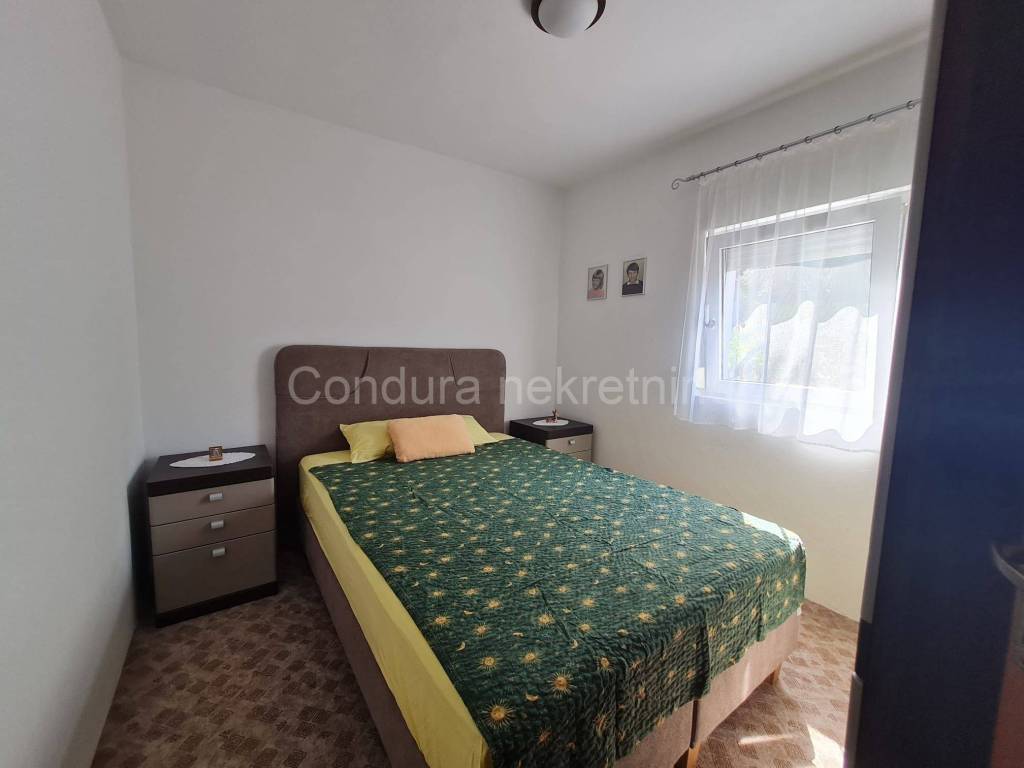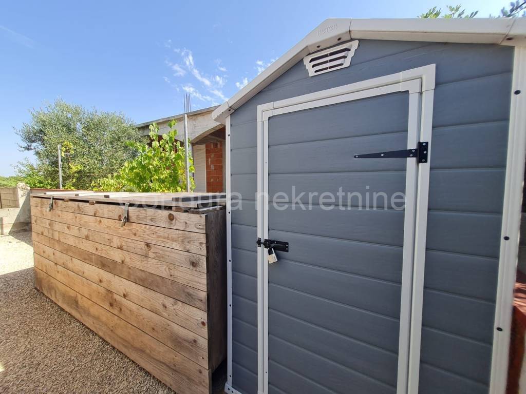 Prodaje se kuća neto površine 60,74 m2 sagrađena na zemljištu površine 146 m2.Kuća je prizemnica sa jednom stambenom jedinicom. Sastoji se od dvije spavaće sobe, kupaonice, kuhinje i dnevnog boravka te spremišta. Ispred dnevnog boravka se nalazi natkrivena terasa površine 12,76 m2.Dvorište je jako lijepo i skladno uređeno sa mnoštvom zelenila, roštiljem te natkrivenim parkingom. Objekt nije spojen na gradski vodovod, opskrba vodom je preko cisterne. Smještena u mirnijem dijelu naselja nekretnina je idealna za odmor. Udaljenost od mora 1,5 km.