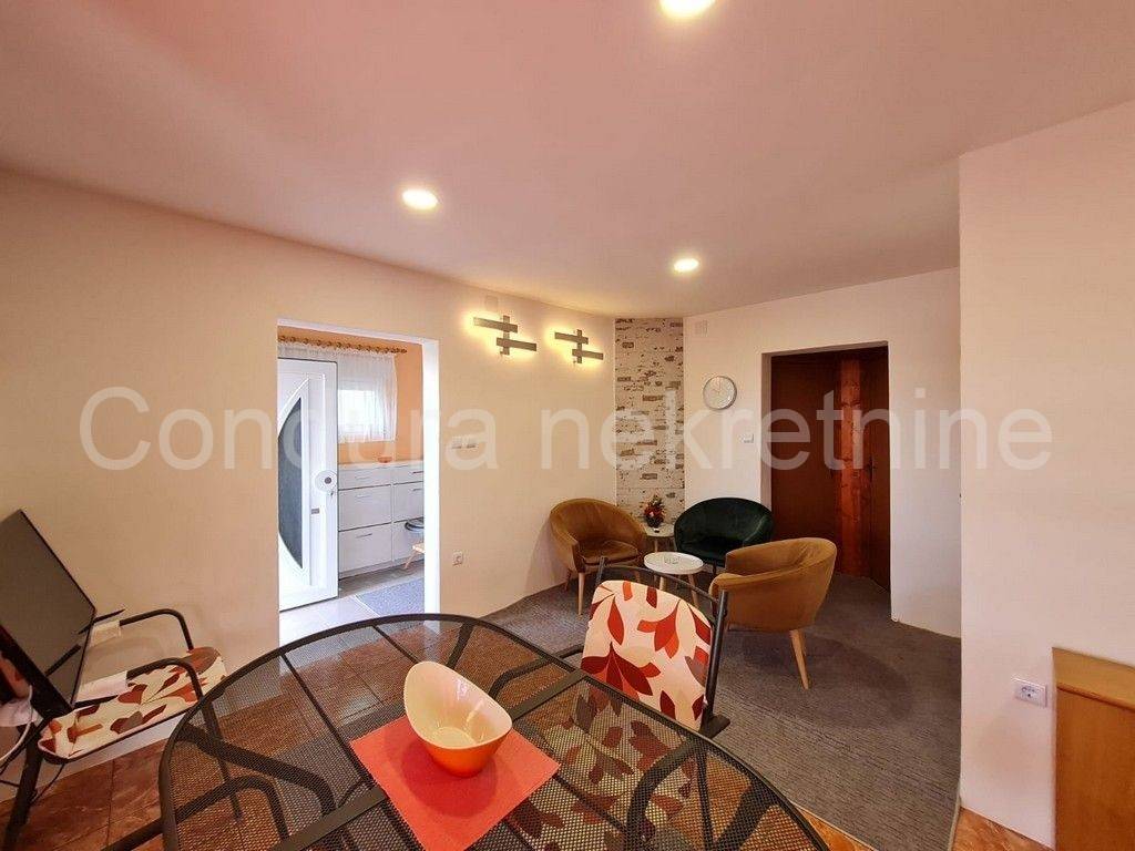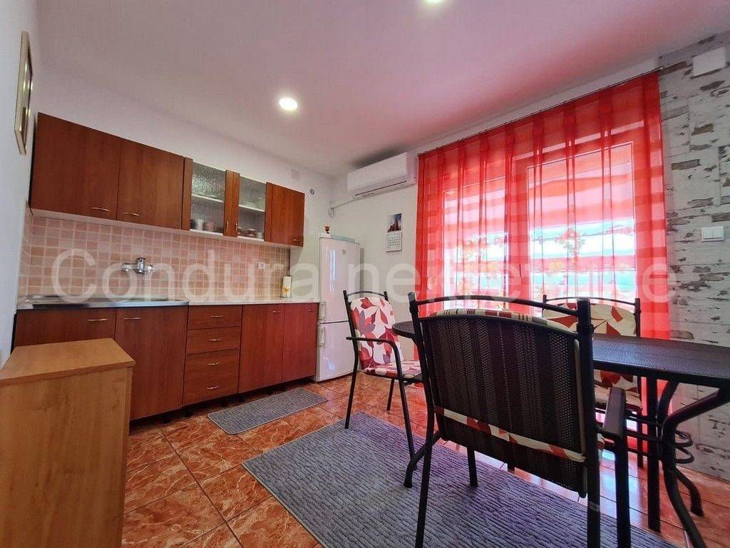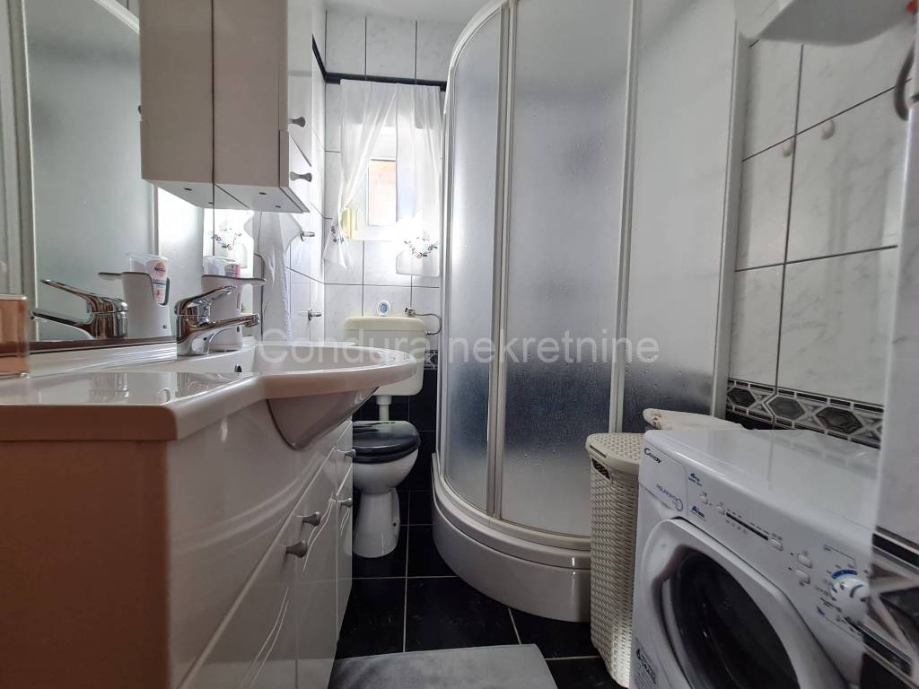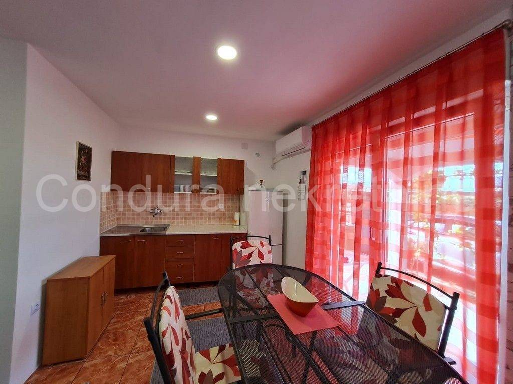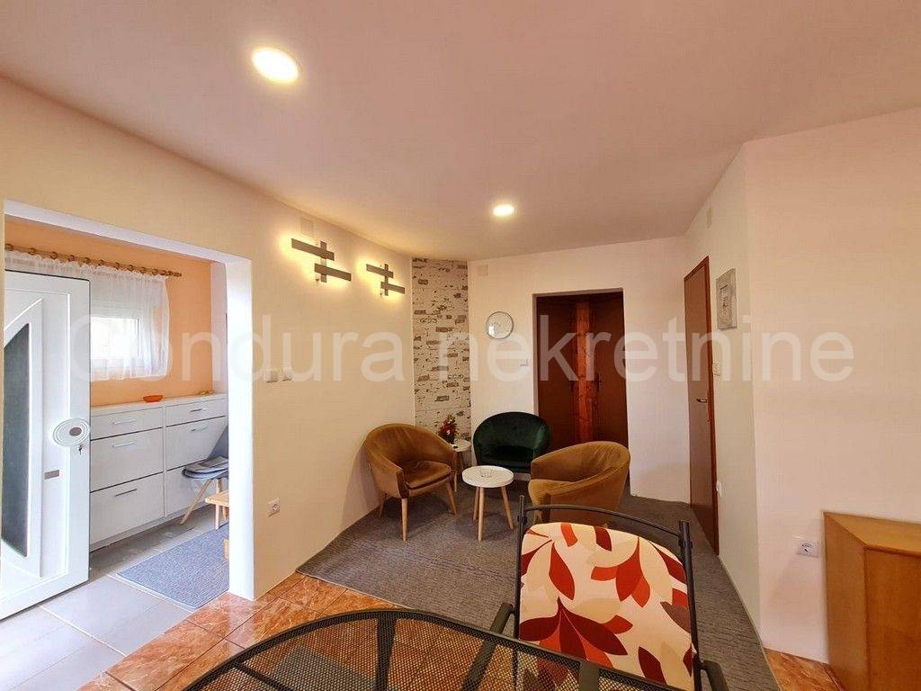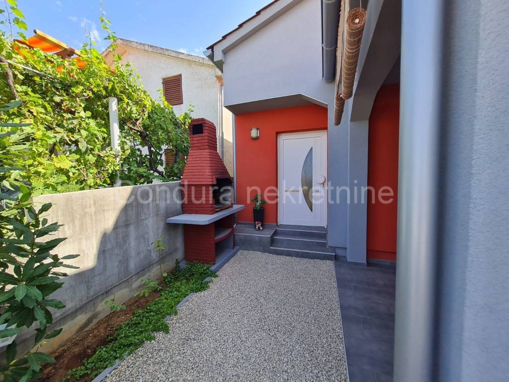 Prodaje se kuća neto površine 60,74 m2 sagrađena na zemljištu površine 146 m2.Kuća je prizemnica sa jednom stambenom jedinicom. Sastoji se od dvije spavaće sobe, kupaonice, kuhinje i dnevnog boravka te spremišta. Ispred dnevnog boravka se nalazi natkrivena terasa površine 12,76 m2.Dvorište je jako lijepo i skladno uređeno sa mnoštvom zelenila, roštiljem te natkrivenim parkingom. Objekt nije spojen na gradski vodovod, opskrba vodom je preko cisterne. Smještena u mirnijem dijelu naselja nekretnina je idealna za odmor. Udaljenost od mora 1,5 km.