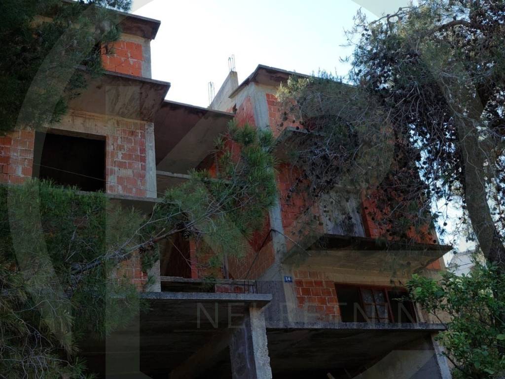 u prizemlju se nalazi uređen apartman 62 m2 sa svim priključcima te se se sastoji od dnevnog boravka sa kuhinjom i blagovaonicom, dvije sobe i izlaz na terasu, dok je preostali dio kuće roh-bau.