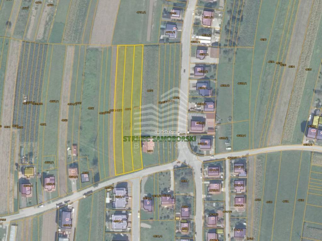Strmec Samoborski - Stara cesta - građevinsko zemljište za gradnju kuća u nizu ili manjih zgrada, katnosi prizemlje + kat + potkrovlje. Veličine je 4.132m2, od čega je 1/4 u građevnoj zoni 3/4 u zelenoj zoni. Zemljište se nalazi uz glavnu cestu, širina uz cestu je 31m, a dužina je 142m. Vlasništvo uredno, svi priključci u neposrednoj blizini. .