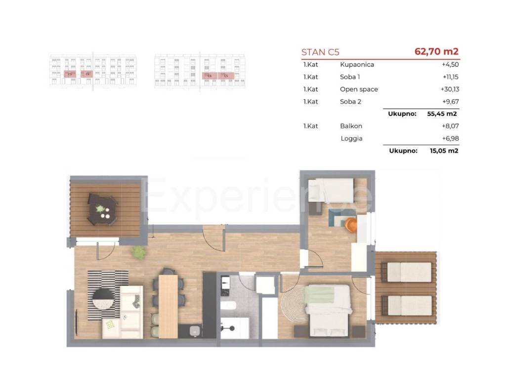 Stanu također pripadaju dva parkirna mjesta ispred zgrade.