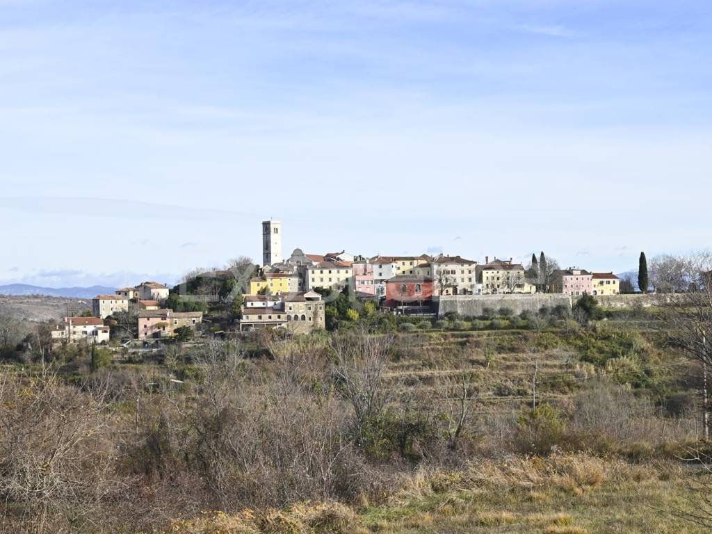 NA ATRAKTIVNOJ LOKACIJI! U Oprtlju, na uzvišenom terenu na prodaji je građevinski kompleks zemljišta, ukupne površine 932 m. Zemljište se nalazi u iznimno mirnom ambijentu, na rubu građevinske zone. Parcela je pravokutnog oblika, te smještena je duž jedne terase brežuljka. Sa parcele pruža se prekrasan pogled na Oprtalj i okolni krajolik.