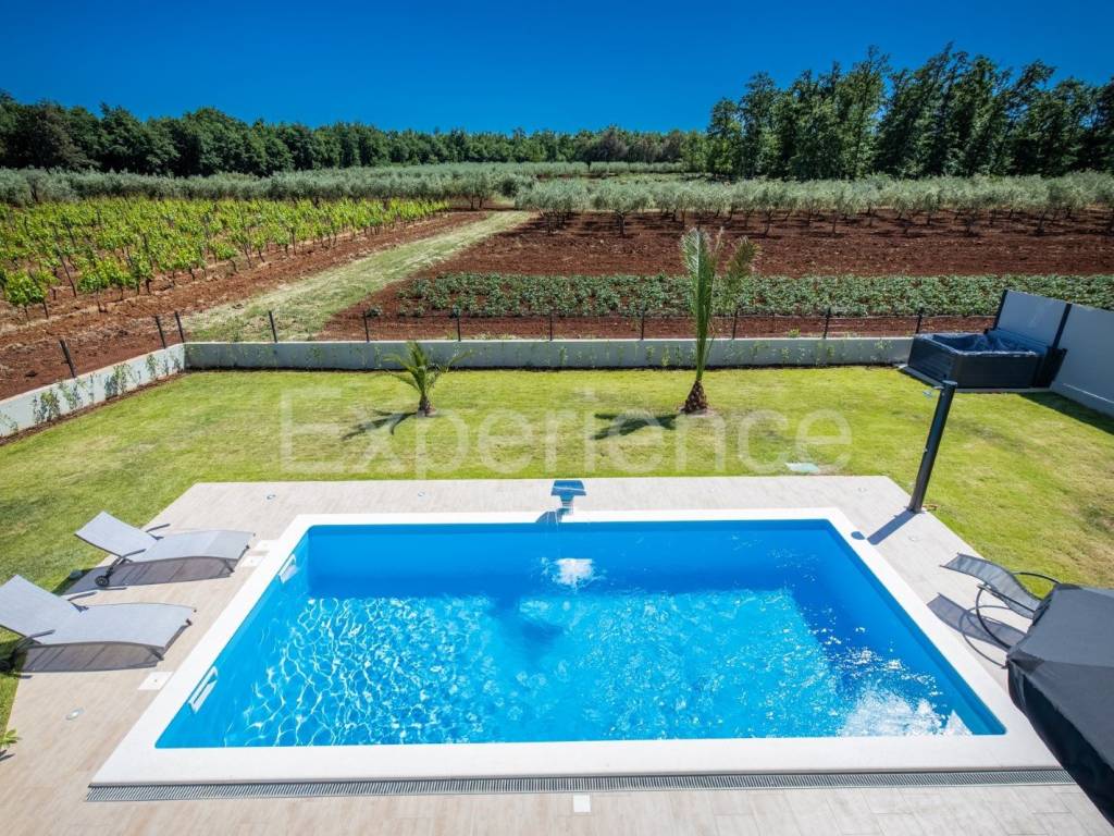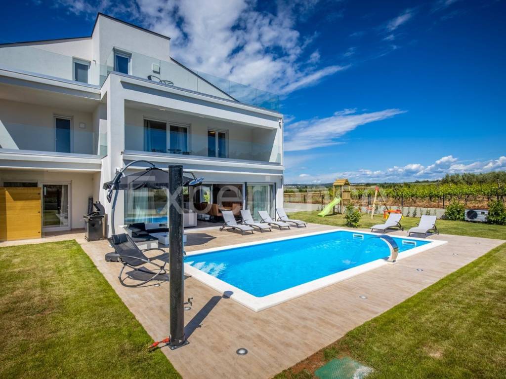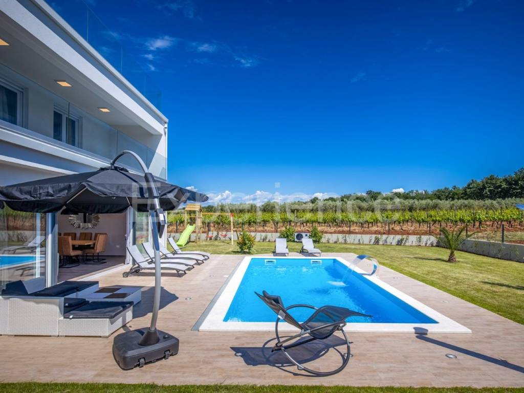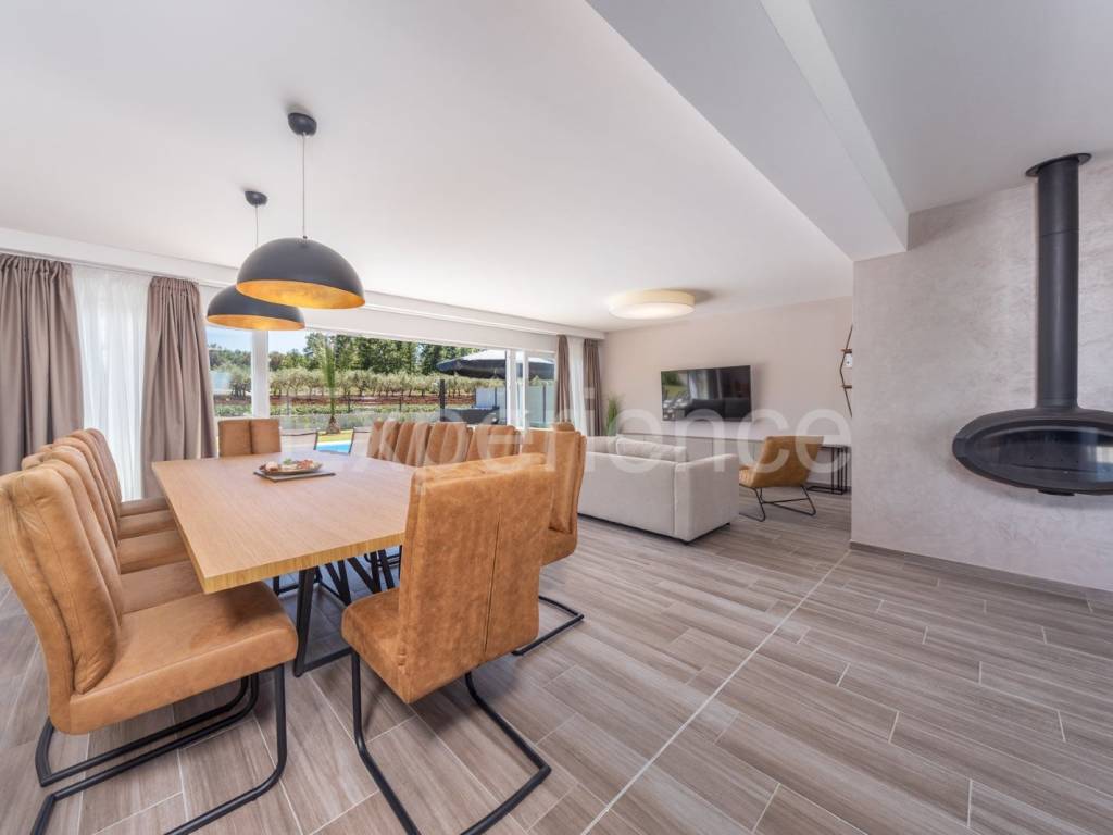 U okolici Poreča, cca. 5 km od mora, u malom istarskom selu na rubu građevinskog područja na prodaji je dvojna vila sa bazenom, ukupne površine 282.96 m. Vila je smještena u iznimno mirnom ambijentu sa kojeg se pruža otvoreni pogled na okolni krajolik.