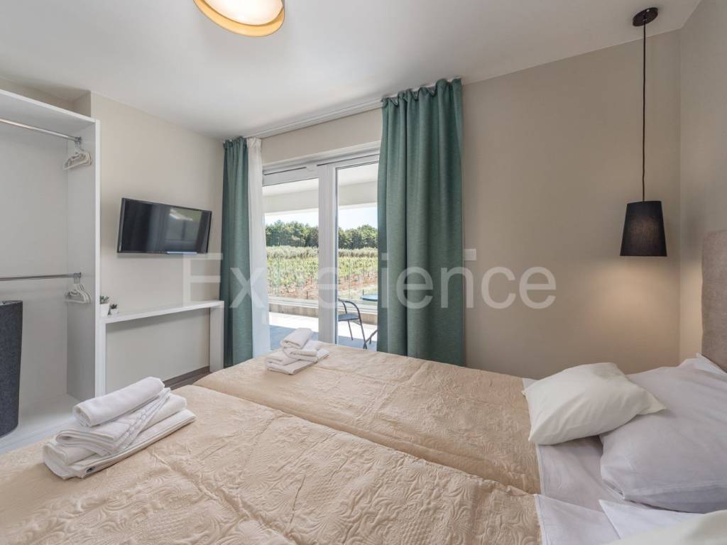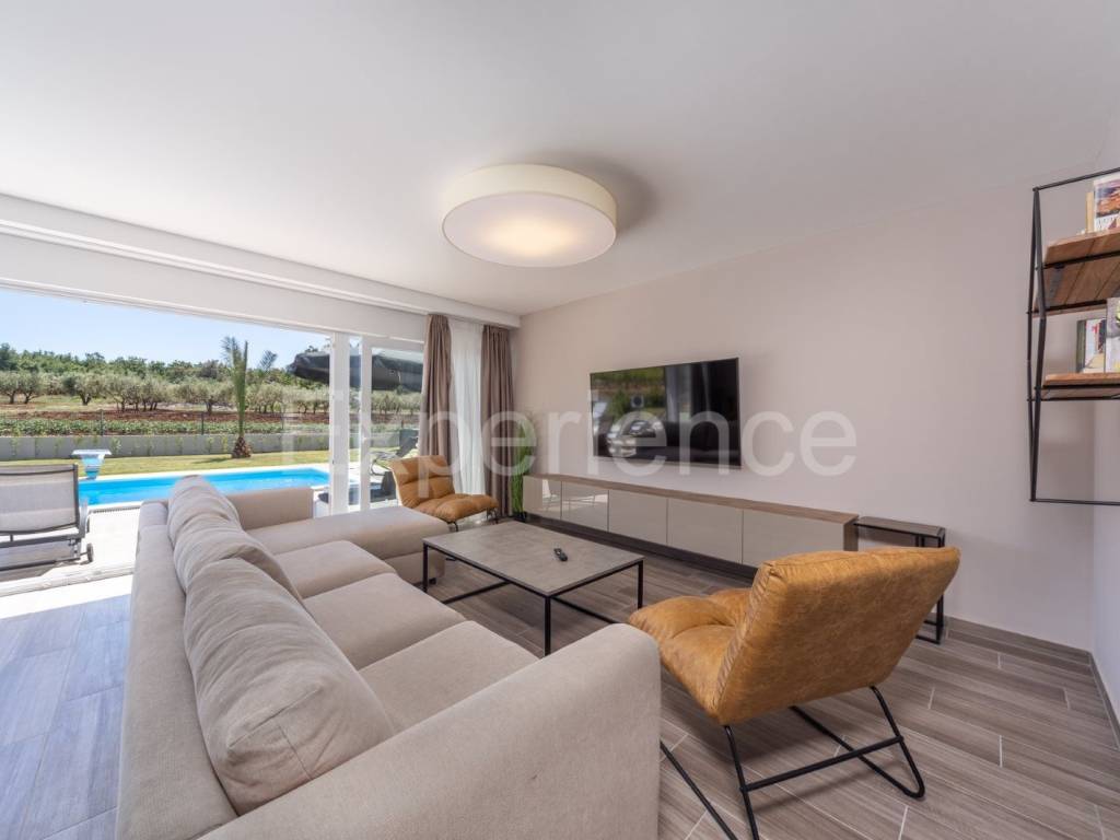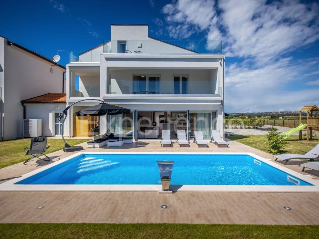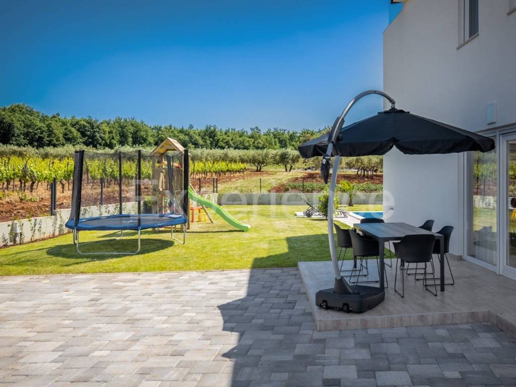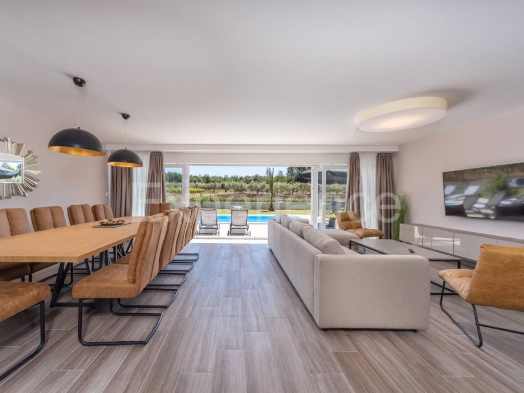 U okolici Poreča, cca. 5 km od mora, u malom istarskom selu na rubu građevinskog područja na prodaji je dvojna vila sa bazenom, ukupne površine 282.96 m. Vila je smještena u iznimno mirnom ambijentu sa kojeg se pruža otvoreni pogled na okolni krajolik.