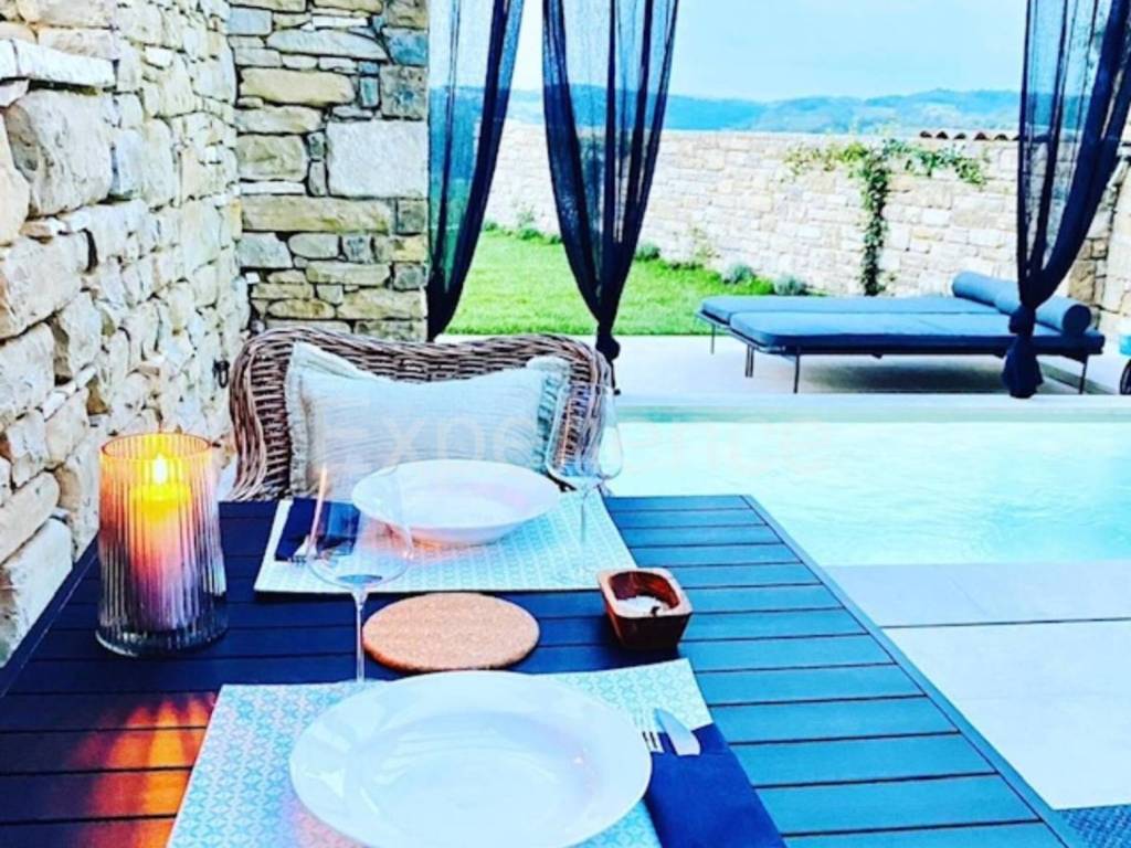 Izlaskom u dvorište povijesnu kamenu kuću nadopunjuje bazen sa prostorom za opuštanje koji je ugrađen u zidine stare kamene kuće, nudeći neusporediv, otvoren pogled na okolna brda. Privatnost, apsolutni mir i arhitektura prožeta tradicijom prošlih vremena, u kombinaciji s prirodnim materijalima poput kamena i drva, stvaraju jedinstveni ambijent na lokaciji s koje se pruža prekrasan pogled na bogati istarski krajolik. Ovo imanje nije samo dom; to je bezvremeno utočište u kojem se stapaju povijest i modernost kako bi pružili očaravajuće životno iskustvo.