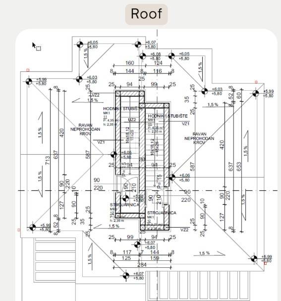 Kuća ukupne veličine 173.28 m2, sastoji se od dnevnog boravka sa kuhinjom, 1 toalet, 3 spavaće sobe i 2 kupaonice, na krovu se nalazi terasa sa pogledom na more. U prizemlju se nalazi open space dnevni boravak sa kuhinjom i toaletom, iz dnevnog boravka izlazimo na natkrivenu terasu na kojoj će biti pripremljena instalacija za ljetnu kuhinju, sa terase pristupamo okućnici koja je približne veličine 200 m2. Unutarnjim stepenicama dolazimo na prvi kat na kojem se nalaze 3 spavaće sobe od kojih jedna ima svoju kupaonice ,a druge dvije spavaće sobe imaju jednu zajedničku kupaonicu. Na krovu se nalazi terasa sa pripremljenim instalacijama za struju i vodu. Prostor na krovu može poslužiti za razne namjene , a sa krovne terase pruža se pogled na more. Nekretnini pripada 2 parking mjesta koje se nalaze na okućnici.