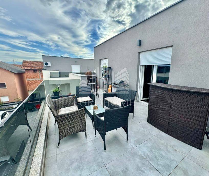 Eurohome Nekretnine ekskluzivno nude moderan dvoetažni stan smješten u mirnoj ulici u Trnavi, u novijoj zgradi s ukupno 6 stambenih jedinica.