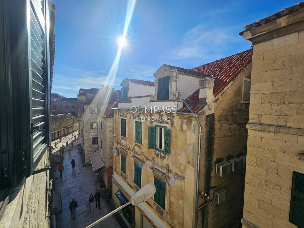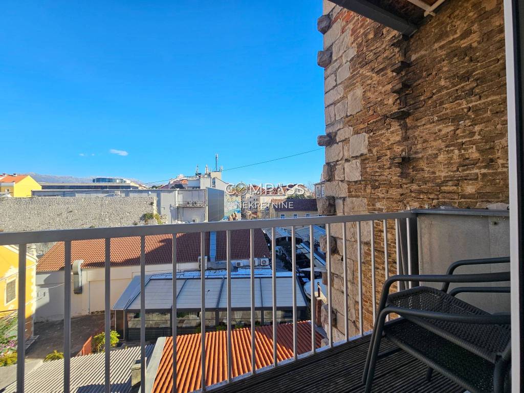 Iznajmljuje se dugoročno prekrasan jednosoban stan na vrhunskoj lokaciji, u samom srcu Splita. Stan se nalazi u manjoj stambenoj kući s tri kata, a s balkona se pruža predivan pogled na Marmontovu ulicu i zvonik sv. Duje.