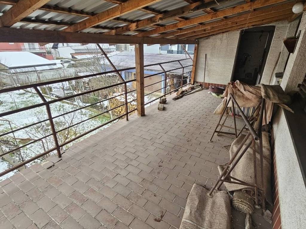 Prvi kat koji je u roh-bau izvedbi te se sastoji od hodnika, sobe sa balkonom, sobe sa natkrivenom terasom, kupaone, kuhinje i potkrovlja