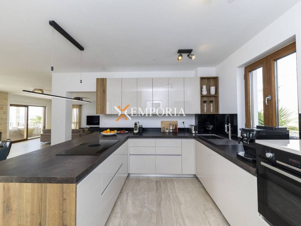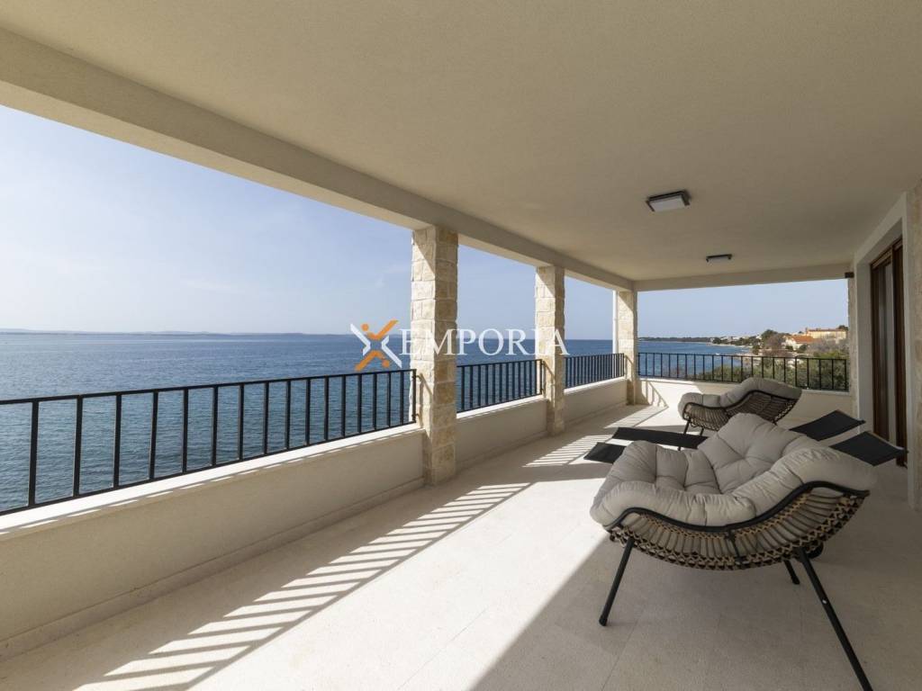Prodaje se prekrasna kuća u mediteranskom stilu – 1. red do mora u Kožinu. Udaljena je samo nekoliko metara od kristalno čistog Jadranskog mora.Vila je smještena u 1. redu, s prekrasnim pogledom na Jadransko more i otoke. Sastoji se od podruma, prizemlja i prvog kata.U podrumu se nalaze kotlovnica, praonica, kupaonica, fitness prostor, prostor za odmor i predviđeni prostor za saunu. U prizemlju su kupaonica, ured, veliki dnevni boravak i blagovaonica, kuhinja, ostava, garaža i natkrivena terasa s pristupom vrtu. Na prvom katu nalazi se hodnik, dvije glavne spavaće sobe s kupaonicama i pristupom natkrivenoj terasi, dvije bočne spavaće sobe s kupaonicama i balkonima. Ukupna površina kuće iznosi 446,80 m2. Površina zemljišta iznosi 696 m2.Dostupna su tri vanjska parkirna mjesta i jedno parkirno mjesto u garaži.Ova kuća arhitektonski je dizajnirana u tradicionalnom mediteranskom stilu, s velikim terasama i prozračnim prostorijama koje pružaju spektakularan pogled na more. Ova nekretnina pruža savršen spoj udobnosti, luksuza i autentičnog mediteranskog ugođaja te je idealno mjesto za uživanje u prekrasnom okruženju. Unutrašnjost vile uređena je moderno i elegantno, s udobnim namještajem i kvalitetnim uređajima.Okružena je mediteranskim vrtom punim bilja i zelenila, stvarajući savršeno okruženje za opuštanje i uživanje. Ova vila je idealna za savršen odmor i uživanje uz more, a također je i izvrstan investicijski potez jer nudi mogućnost iznajmljivanja turistima. S obzirom na vrhunsku lokaciju, kvalitetu opreme i moderan dizajn mogu se postići izrazito dobre cijene turističkog najma i odlična popunjenost.