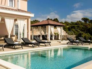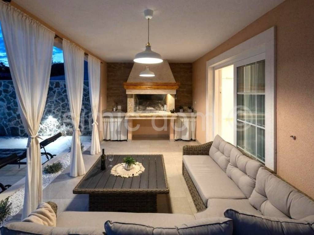 Posredujemo u prodaji zaista predivno uređene vile koju krasi pravi dalmatinski ugođaj, predivan pogled na more i okružuje smirujuće zelenilo. Vila je smještena na parceli od 920 m koja se nalazi svega 800m od mora. Nekretnina je izgrađena 2024.godine i napravljena kao visokoenergetski objekt, sa dizalicom topline, podnim grijanjem, troslojnom stolarijom, vrhunskom keramikom te se prodaje sa svim namještajem i opremom uključenom u cijenu. Ima stambenu površinu od 230 m2 te se proteže na dva kata. Sastoji se od pažljivo uređene kuhinje otvorenog koncepta sa blagovaonicom i dnevnim boravkom, te četiri vrhunski opremljene spavaće sobe, svaka sa svojom kupaonicom, a tu je i dodatni gostinjski wc. U sklopu predivne okućnice nalazi se prostrani grijani bazen od 28m2, sa sunčalištem i uređenim vrtom, kao i velikim parkingom. Tu je i vanjska kuhinja s kaminom te sjenica, idealna kao prostor za druženje i uživanje objedu uz panoramski pogled. Ova zaista šarmantna dalmatinska vila nalazi se svega 2km od kafića i dućana, 900m od plaže, a do Rogoznice ima svega 7 km.