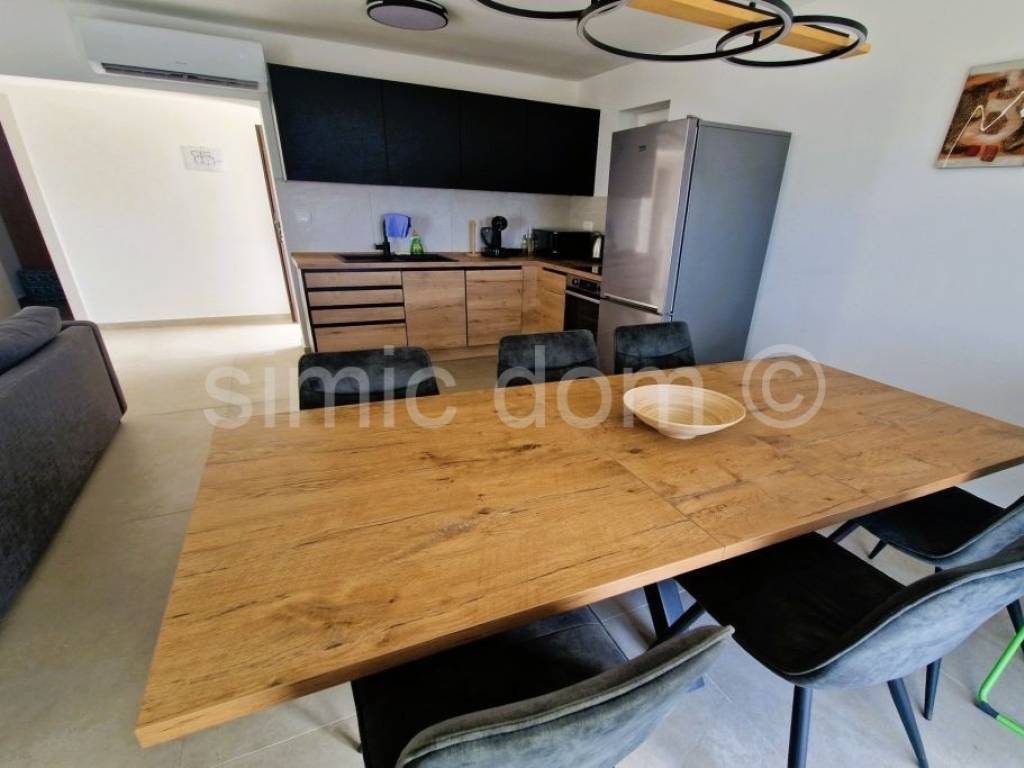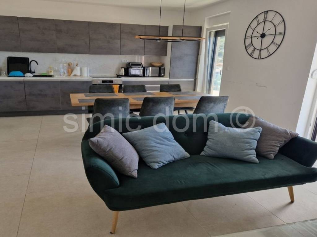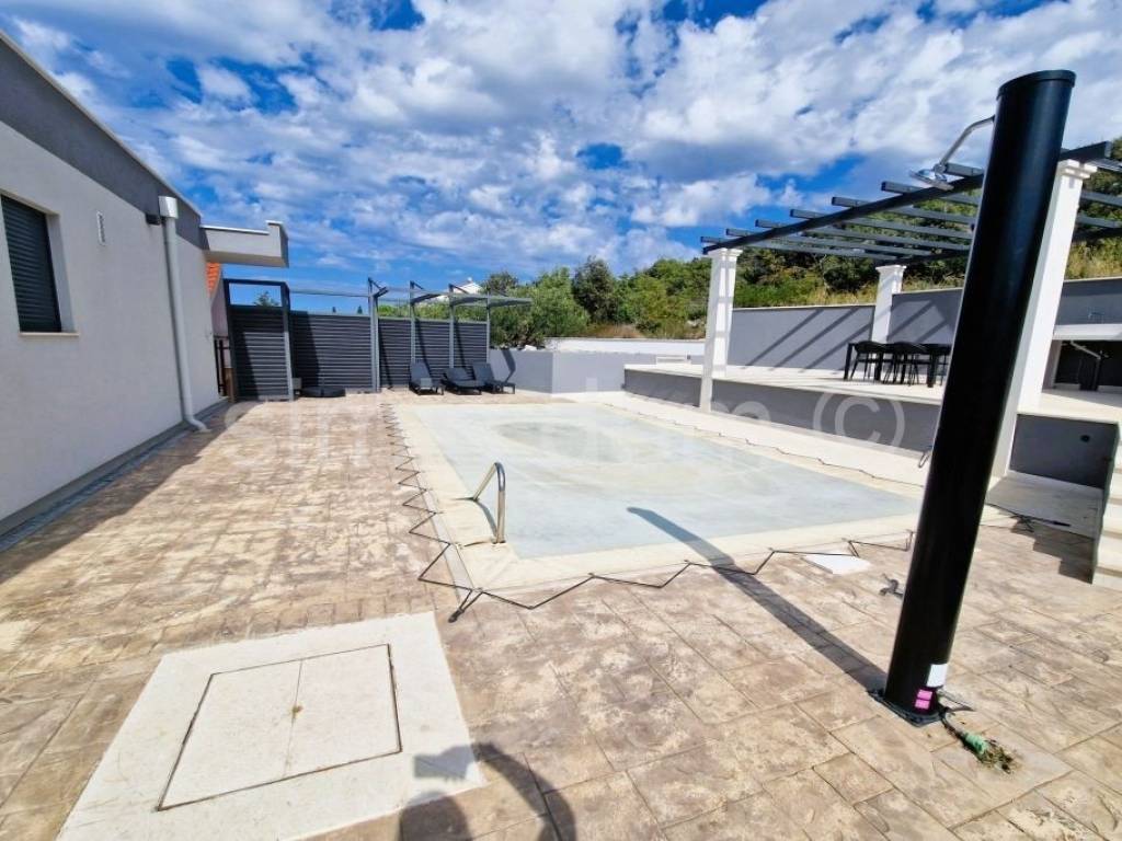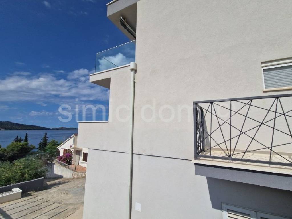 Posredujemo u prodaji atraktivne samostojeće kuće na području blizu Rogoznice, na top lokaciji svega 100m od mora. Kuća se sastoji od tri etaže, ukupne bruto površine približno 325 m2. Na prvoj etaži nalazi se garaža, dvije kupaonice, soba te velika otvorena prostorija s kuhinjom. Ovu etažu potrebno je kozmetički osvježiti i ona može služiti kao konoba ili kao zaseban apartman. Na drugoj etaži smješten je prostrani apartman s tri spavaće sobe, tri kupaonice te velikom kuhinjom, blagovaonicom i dnevnim boravkom otvorenog koncepta iz kojeg se proteže predivan pogled na more, a tu je i natkrivena terasa. Na trećoj etaži smješten je još jedan predivan apartman s tri spavaće sobe - svaka s vlastitom kupaonicom, tu je i dodatna kupaonica te veliki dnevni dio s kuhinjom i terasom. Gornja dva apartmana su potpuno namještena i opremljena, svaka soba je opremljena klima uređajima, imaju kvalitetnu PVC stolariju s komarnicima te podno grijanje u kupaonicama. Sav namještaj i oprema su uključeni u cijenu. U sklopu dvorišta kuće, koje je površine preko 380 m2 nalazi se vanjski parking za 3 automobila, roštilj te velika stražnja terasa s bazenom od 30 m2, sunčalištem s pergolama, vanjskom kuhinjom i sjedećim dijelom za uživanje u ljetnim večerima. Kuća je odlična investicija za kupce koji žele uživati u mirnom mjestu s prelijepim plažama i s kristalno čistim morem, a opet imati mogućnost brzog dolaska u veća mjesta poput Rogoznice i Trogira.