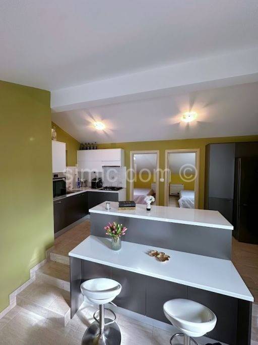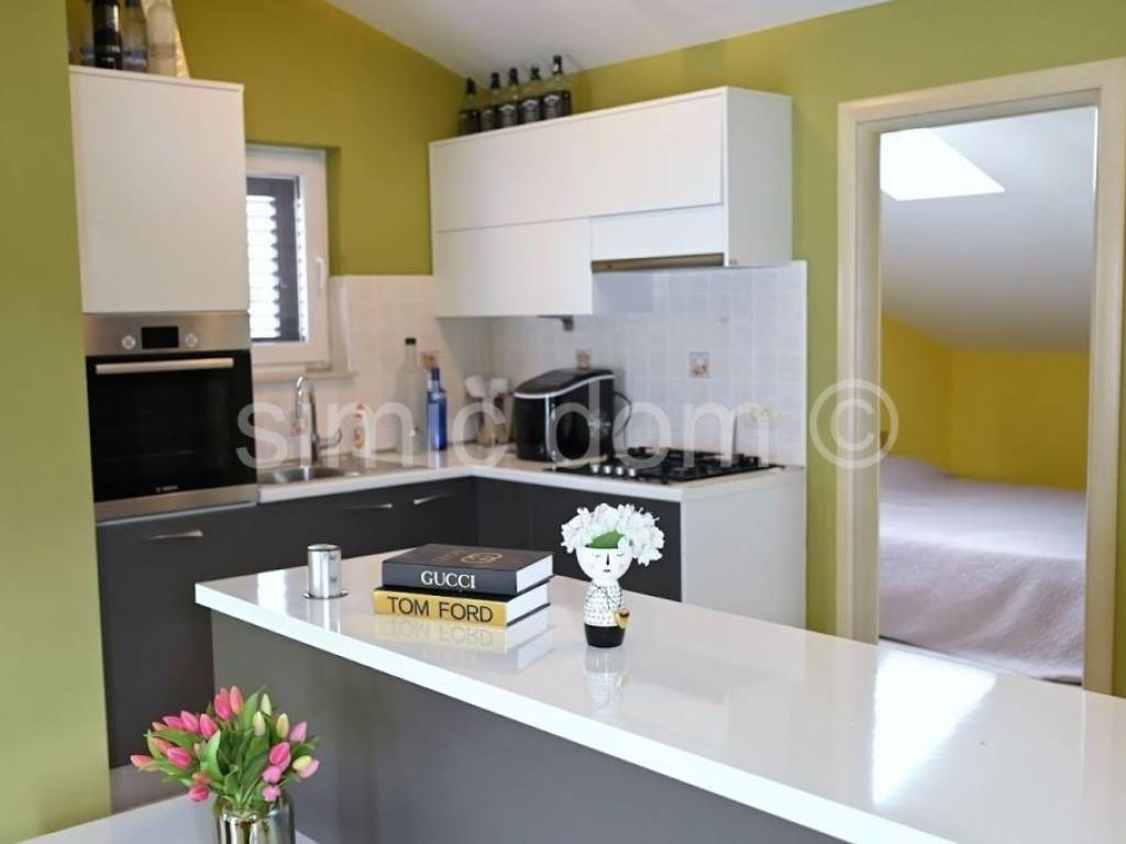 Na prodaju je izrazito lijepa apartmanska kuća smještena u prvom redu do mora i odmah do predivne plaže s tirkizno plavim morem. Kuća se nalazi u mirnom području nedaleko Rogoznice, do koje ima 10 minuta vožnje. Kuća se sastoji od tri etaže te sveukupno 4 apartmana, ukupne bruto površine oko 400 m2. Na svim etažama kuće nalaze se terase s kojih se proteže vrhunski pogled na more. U prizemlju kuće nalazi se apartman s 2 spavaće sobe, kupaonicom, kuhinjom i dnevnim boravkom. Na prvom katu smješten je veliki apartman s 4 spavaće sobe, 2 kupaonice, kuhinjom i dnevnom boravkom. Na drugom katu također je smješten apartman s 3 spavaće sobe, kupaonicom, kuhinjom i dnevnim boravkom, a tu je još i mali apartman sa spavaćom sobom, kupaonicom te kuhinjom s dnevnim boravkom. Kuća je kompletno renovirana 2017. godine, napravljena je izolacija, video nadzor te je odlično održavana. Svaka spavaća soba kao i dnevni boravak opremljen je klima uređajem, dok prizemlje ima i peć na pelete. U sklopu okućnice moguće je parkirati i do 5 automobila, a tu je i garaža te roštilj. Kuća se prodaje s namještajem koje je uključeno u cijenu. Ispred kuće se nalazi uređeni mul s 2 veza i u moru ugrađena bova za brod. Vlasništvo uredno.
