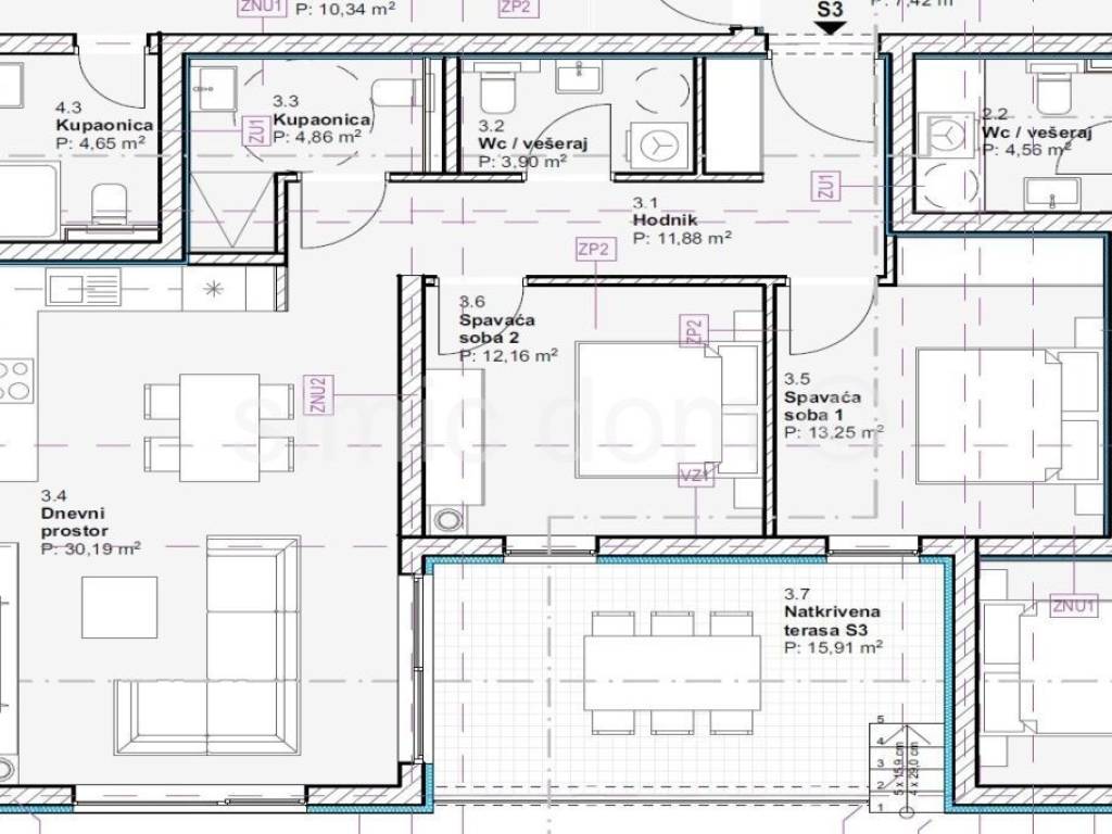 Na prodaju su apartmani u novogradnji, u mirnoj ulici, udaljenoj 650m od centra Vodica i 800m od predivne šljunčane plaže. Apartmani S2 i S3 nalaze se u prizemlju zgrade, gotovo identične su površine od oko 84 m2 te imaju sličan raspored. Sastoje se od hodnika, kupaonice s praonicom, dodatne kupaonice, dvije spavaće sobe, kuhinje otvorenog koncepta s dnevnom boravkom koji ima izlaz na prostranu terasu od preko 17 m2 podne površine. Apartmanima pripada i spremište u zgradi te vanjsko parkirno mjesto. Uz nadoplatu od 7500 moguće je kupiti u drugo parkirno mjesto. Cijena S2 je 320.150, dok je cijena S3 336.800. Projekt grade investitori s dugogodišnjim iskustvom te će apartmani biti opremljeni prema najnovijim standardima gradnje s visokokvalitetnim materijalima, uključujući ALU prozore, električne rolete, podove od prirodnog kamena, modernu kupaonsku opremu, klimatizaciju spavaćih i dnevnih soba te podno grijanje. Kupci su oslobođeni poreza na promet nekretnina. Očekivano useljenje je kroz siječanj 2026. godine.