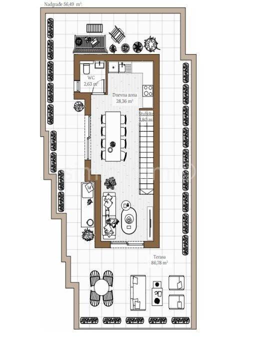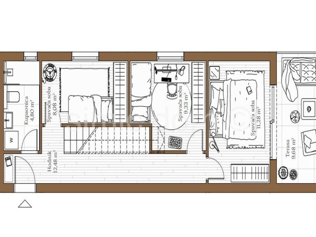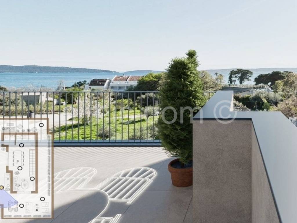 Na prodaju su stanovi na izrazito atraktivnoj lokaciji blizu svih sadržaja u Kaštel Kambelovcu. Zgrada je udaljena niti dvije minute hoda do plaže, u mirnoj ulici i u blizini je svih ostalih potrebnih sadržaja poput dućana, kafića, škola i vrtića. Zgradu gradi renomirana firma s velikim iskustvom u novogradnjama, stoga su kupci oslobođeni poreza na promet nekretninama. Stan S4 je dvoetažan stan i nalazi se drugom katu te se proteže na treći kat zgrade. Ima neto korisnu površinu od 107,30 m2. Na donjoj etaži smješteni su hodnik, tri spavaće sobe te kupaonica i terasa. Gornji kat sastoji se od hodnika, toaleta, kuhinje s blagovaonicom i dnevnim boravkom iz kojeg se izlazi na predivnu terasu s panoramskim pogledom na more, a tu je i ljetna kuhinja te mjesto za sjedenje i uživanje u pogledu. U sklopu zgrade nalaze se još i spreme te vanjska parkirna mjesta koja se nadoplaćuju. Svaki stan opremljen je s pažnjom prema visokim standardima gradnje. U pogledu opreme, odabrani su renomirani proizvođači koji jamče dugotrajnost, funkcionalnost i estetiku: Daikin klima uređaji, Hansgrohe i Geberit sanitarije, podno grijanje u kupaonicama, a u dogovoru s investitorom može se u ovoj fazi provesti i kroz cijeli stan, talijanska premium keramika, parket od hrasta I. kategorije, aluminijska vanjska stolarija i sl. Očekivano useljenje je proljeće 2027. godine.