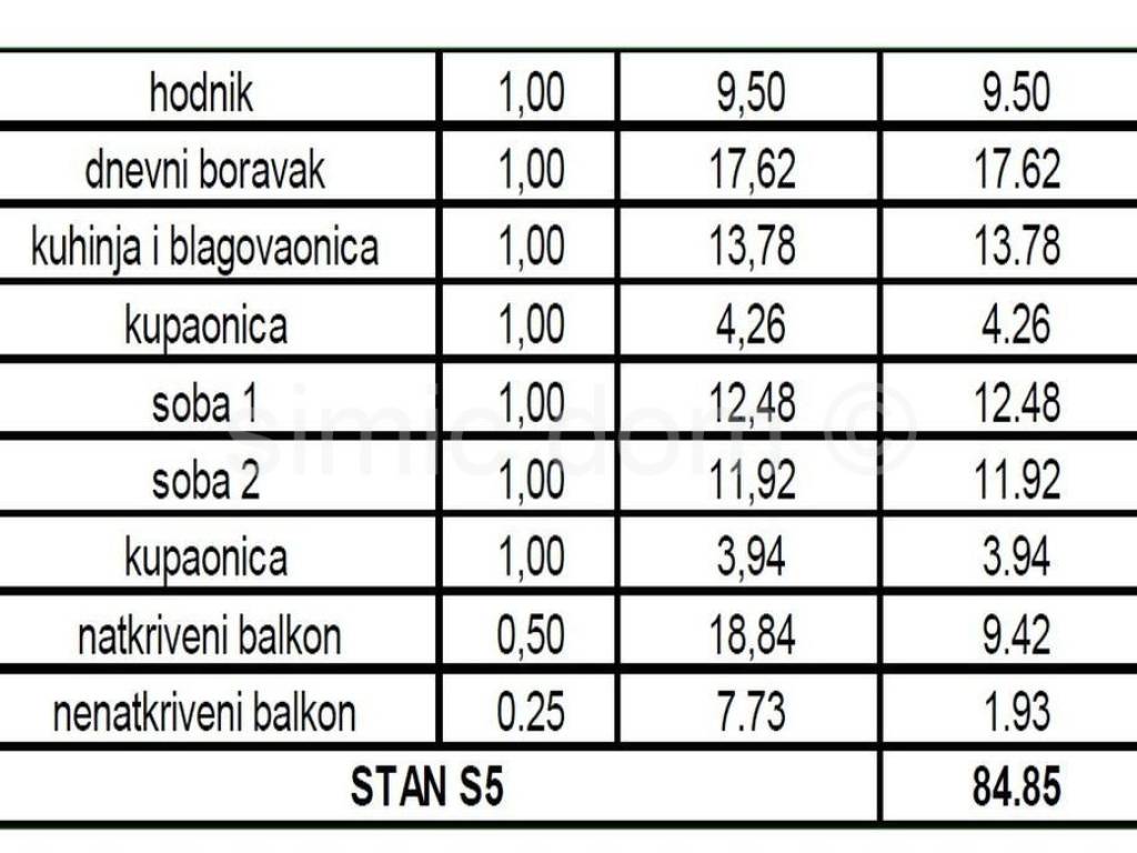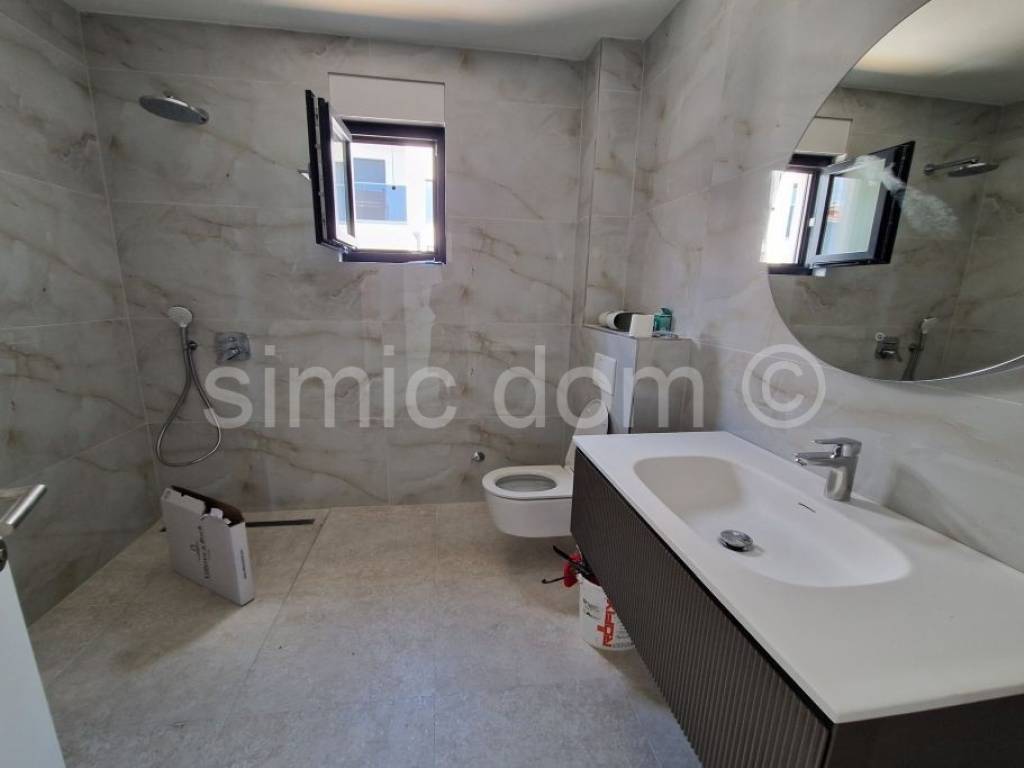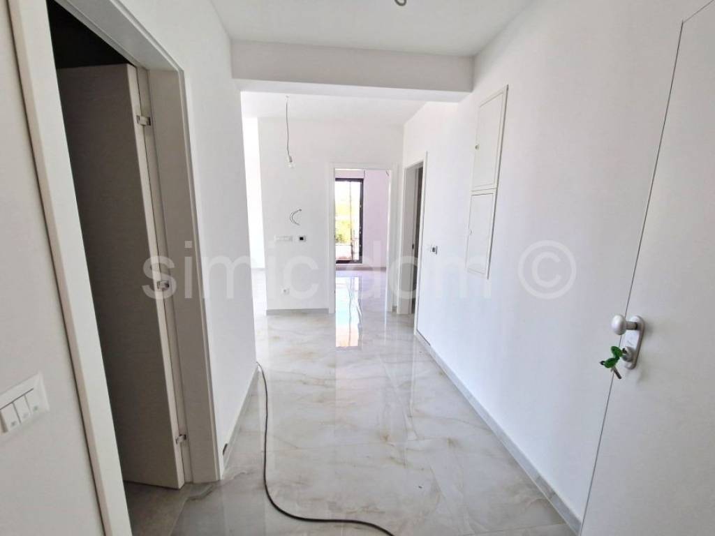 Na prodaju je vrhunski apartman u novoj zgradi izrazito visoke kvalitete i opremljenosti, i na odličnoj lokaciji svega 160m od plaže. Apartman S5 nalazi se na drugom katu zgrade koja ima lift. Apartman ima ukupnu neto površinu od oko 114 m2 sa svim pripatcima i uračunatim koeficijentima. Unutarnja površina apartmana je 73,50 m2, dok su tu još dvije velike terase, jedna u razini apartmana podne površine 25,77 m2 i krovna terasa podne površine preko 40 m2, bazen od 24,68 m2 i strojarnica, a pripada mu i garažno mjesto, te sprema, sve uračunato u cijenu. Apartman se sastoji od hodnika, dvije kupaonice, dvije spavaće sobe, kuhinje otvorenog koncepta s blagovaonicom i dnevnim boravkom koji ima izlaz na terasu. Iz apartmana se proteže prekrasan panoramski pogled na more i okolinu. Apartmani su opremljeni vrhunskom stolarijom te keramikom i spremni su za useljenje kroz ljeto 2025. godine. Lokacija zgrade odlična je zakupce koji se žele baviti najmom, ali i za one koji žele uživati u vlastitoj nekretnini, pogledu i blizini plaže.