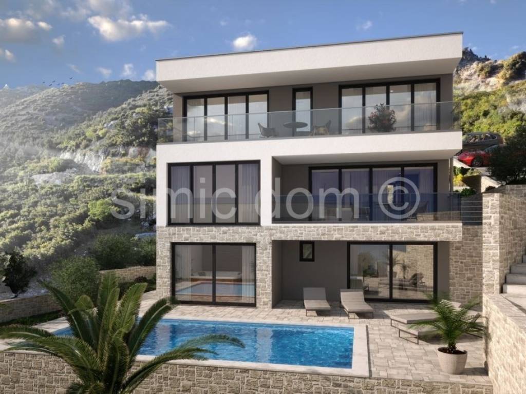Posredujemo u prodaji fantastične vile čija će izgradnja uskoro započeti na prekrasnoj, vrlo mirnoj lokaciji južnog dijela Pelješca. Vila će se prostirati etažama suterena, prizemlja i prvog kata, a ukupna joj je korisna površina 208 m2. U suterenu su predviđeni ulaz, spremište, fitness prostorija, kupaonica, sauna, soba za tehniku te natkrivena terasa. U prizemlju projekt predviđa ulazni hodnik, toalet, kupaonicu, spavaću sobu s garderobom, impresivan dnevni boravak s kuhinjom u modernom, otvorenom konceptu, a tu je i velika terasa s bazenom od 38m2. Unutarnje stepenište vodi na prvi kat gdje će biti dodatne dvije spavaće sobe s kupaonicama i garderobama te veliki balkon. Posebno ističemo kako će se iz vile pružati spektakularan pogled na more, staru Korčulu te okolna mjesta. Riječ je o visokokvalitetnoj nekretnini čija će finalna oprema uključivati vrhunsku keramiku i sanitarije inozemnih proizvođača, a posebna se pažnja posvetila samoj konstrukciji, što sve skupa jamči izniman dojam kvalitete i luksuza. Lokacija je samo 40m udaljena od mora i prekrasnih plaža ovog kraja. Investitor je pravna osoba te nema obveze plaćanja 3% poreza na promet nekretninama. Vlasništvo uredno.