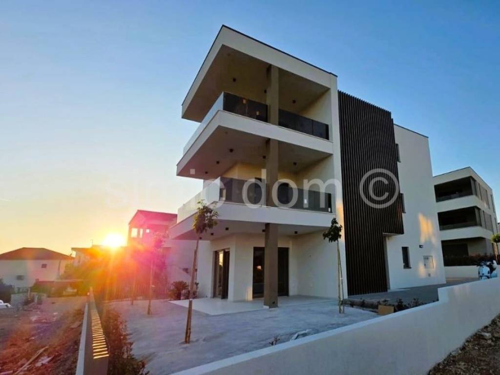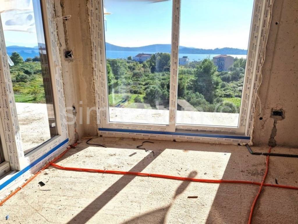 Na prodaju je odličan apartman u novogradnji koja se nalazi 300 metara od predivne šljunčane plaže u Vodicama. Apartman se nalazi na drugom katu manje zgrade. Ima ukupnu podnu površinu od 89m2 od čega je 70m2 unutarnjeg prostora i 19m2 natkrivene terase s prekrasnim pogledom na more. Sastoji se od hodnika, tri spavaće sobe, dvije kupaonice, te prostrane kuhinje s blagovaonicom i dnevnim boravkom otvorenog koncepta. Apartmanu također pripada spremište od 12,66m2 i dva vanjska parkirna mjesta, uključena u cijenu. Oprema je prema visokim standardima investitora: vanjska PVC stolarija s komarnicima, protuprovalna i protupožarna ulazna vrata, rolete s električnim podizačima, keramičke podne obloge talijanske proizvodnje, podno grijanje, moderne kupaonske sanitarije. Očekivano useljenje je krajem 2025. godine. Zbog svoje lokacije blizu svih sadržaja ova nekretnina je odlična investicija kako za najam tako i kao vlastita nekretnina za odmor.