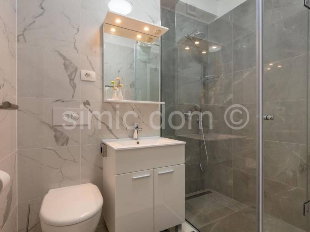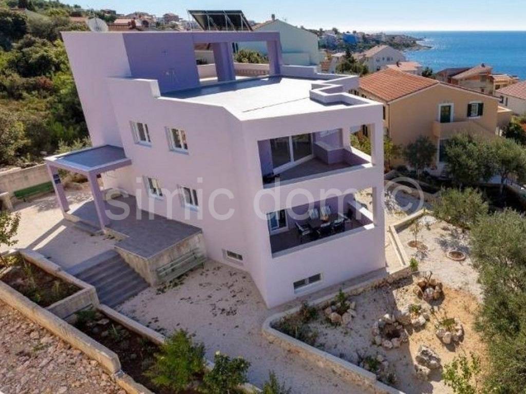 Posredujemo u prodaji vrlo lijepe, potpuno opremljene i namještene vile koja se nalazi samo 50m od mora u jednoj od najljepših uvala rogozničkog područja. Stambena joj je površina 389m2, a nalazi se na prostranoj parceli od 858m2. Vila se sastoji od suterena, prizemlja te dva kata. U suterenu je smješten jednosobni apartman od 50m2 te pomoćna prostorija (vodosprema). U prizemlju se nalaze dva apartmana od koji svaki ima dvije spavaće sobe, prostran dnevni dio s kuhinjom i blagovaonicom te kupaonicu; jedan od apartmana nudi i dodatni toalet. Apartmani nude i prekrasne terase, od kojih se s jedne pruža prelijep pogled na more i cijelu uvalu. Na prvom je katu trosoban stan s dvije kupaonice i još jednim toaletom te s vrlo velikim dnevnim dijelom s kuhinjom i blagovaonicom. Ova etaža nudi dvije terase, jednu veću i jednu manju, a s kojih se pruža jako lijep pogled na okolno područje. Na drugom je katu krovna terasa koja ima pripremljene instalacije za jacuzzi te vanjski tuš. Vila je vrlo kvalitetno građena te nudi i solarno grijanje. Na parceli su 4 parkirna mjesta, dok njezina veličina ostavlja mogućnosti i za dodatne sadržaje. Vlasništvo uredno.