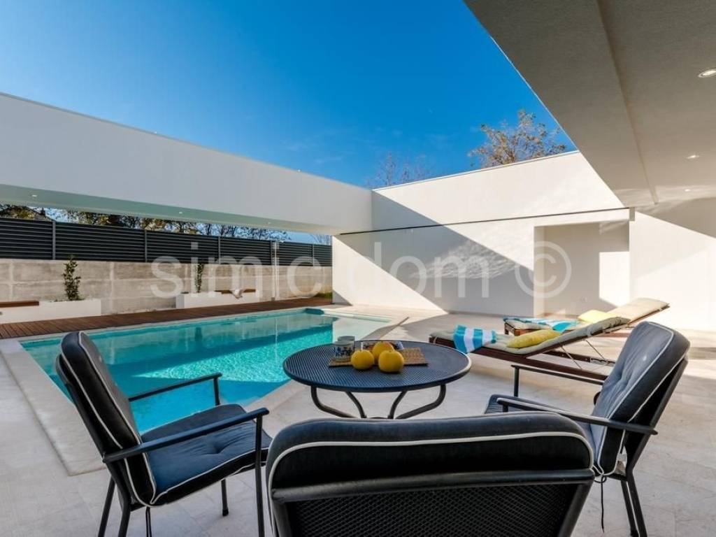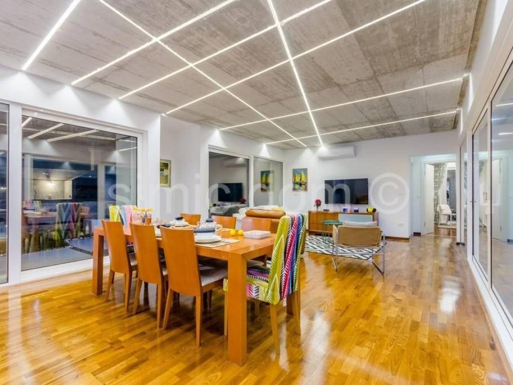 Posredujemo u prodaji fantastične nove vile na Braču, u lijepom mjestu Nerežišća u unutrašnjosti otoka. Kuća ima ukupnu površinu od 332,89 m2 koja uključuje interijer od 118,58 m2, prekrasan bazen od 36 m2 i ukupno 178,31 m2 u terasama. Unutrašnjost se sastoji od prostranog dnevnog boravka i blagovaonice, kuhinje, četiri spavaće sobe i četiri kupaonice (dvije kupaonice su uključene kao privatne u dvije spavaće sobe). Nekretnina uključuje još jedan manji objekt s garažom i podrumom s ukupno 38,25 m2. Ovo je luksuzan i lijepo uređen objekt, savršen za drugi dom u srcu prekrasnog otoka Brača.