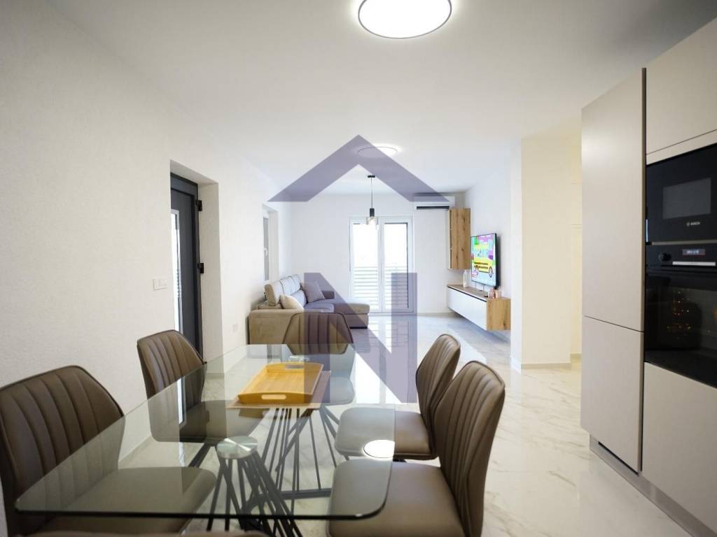 Sastoji se od ulaza, dnevnog boravka, kuhinje s blagovaonicom, 3 spavaće sobe, od kojih jedna ima vlastitu kupaonicu i još jedne kupaonice.