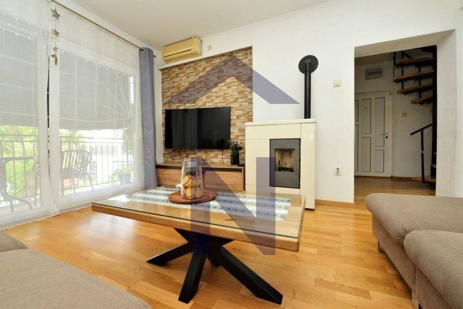 Gornja etaža ima pristup stepenicama sa vanjske strane i zaseban ulaz te se može etažirati i napraviti dva manja stana u svrhunajma ili svrhu turizma.Zbog svoje TOP lokacije stan se koristio i u turističke svrhe.