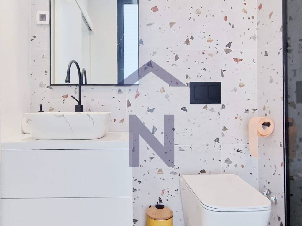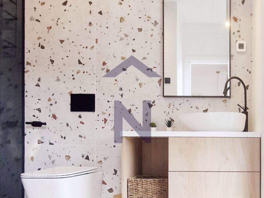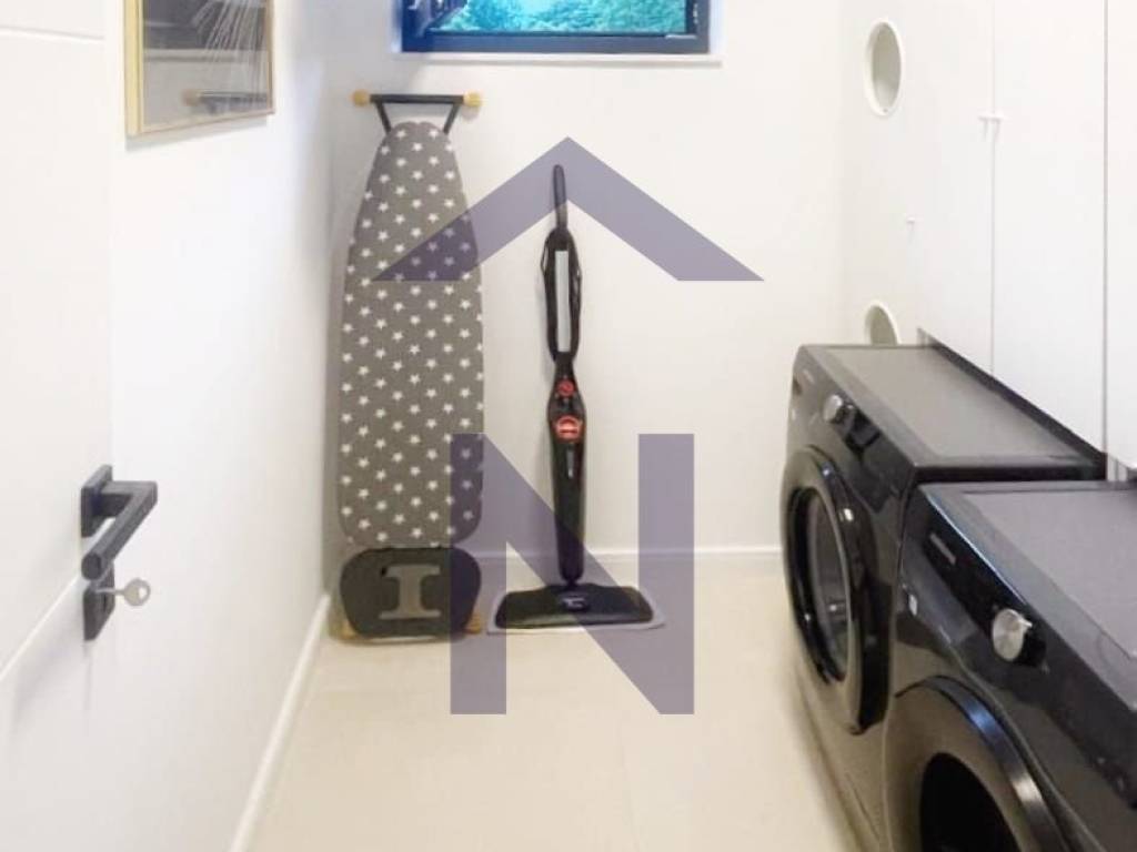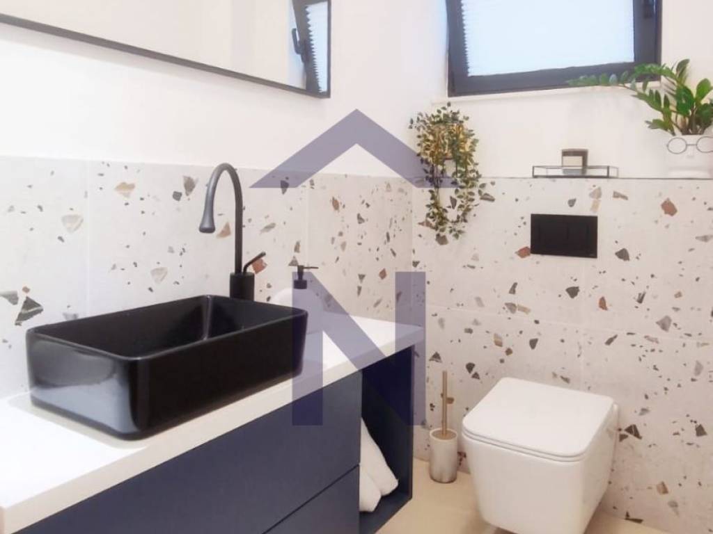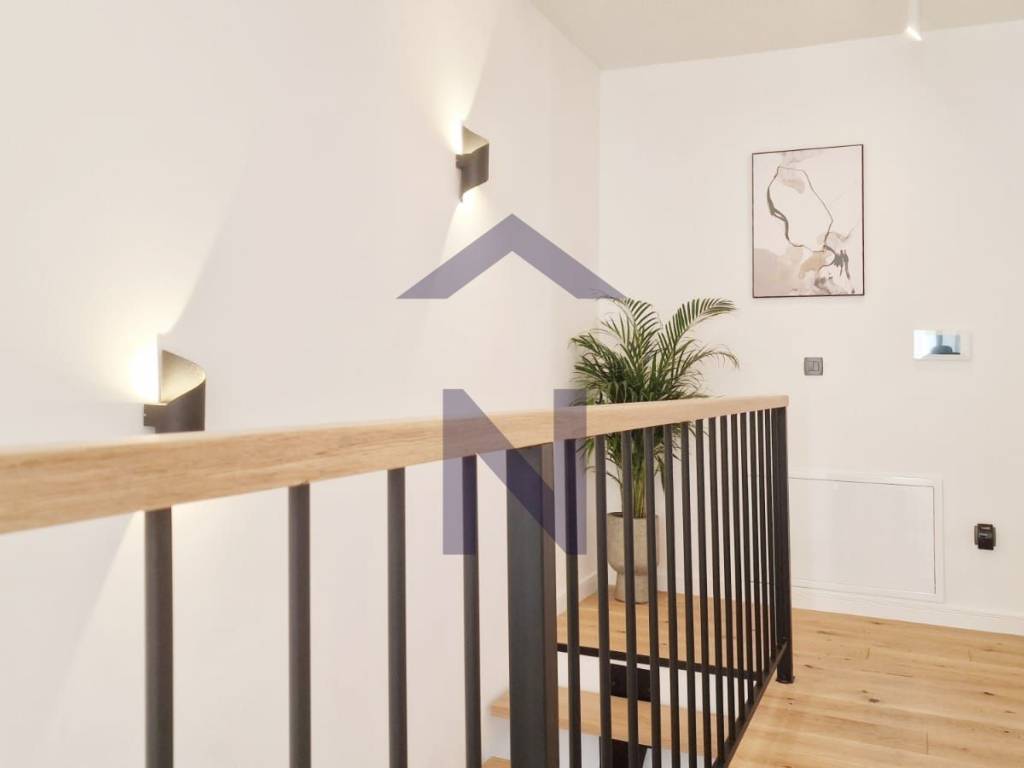 Das Erdgeschoss hat einen keramischen Fußboden, und die Zimmer haben ein dreischichtiges Parkett. Das Erdgeschoss und der erste Stock sind durch eine hochwertige Eisentreppe verbunden.