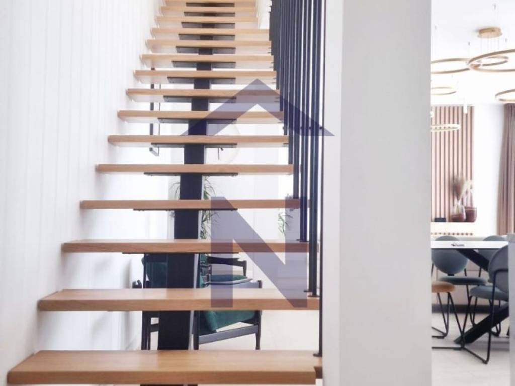 The ground floor has a ceramic floor, and the rooms have a three-layer parquet. The ground floor and first floor are connected by a high-quality iron staircase.