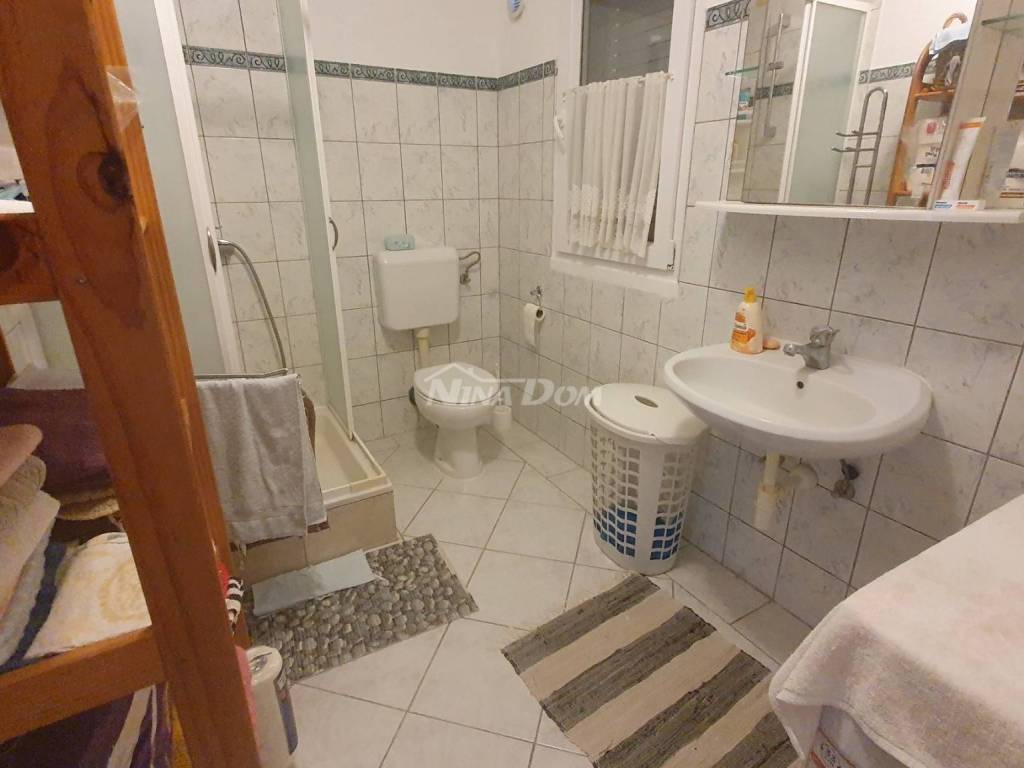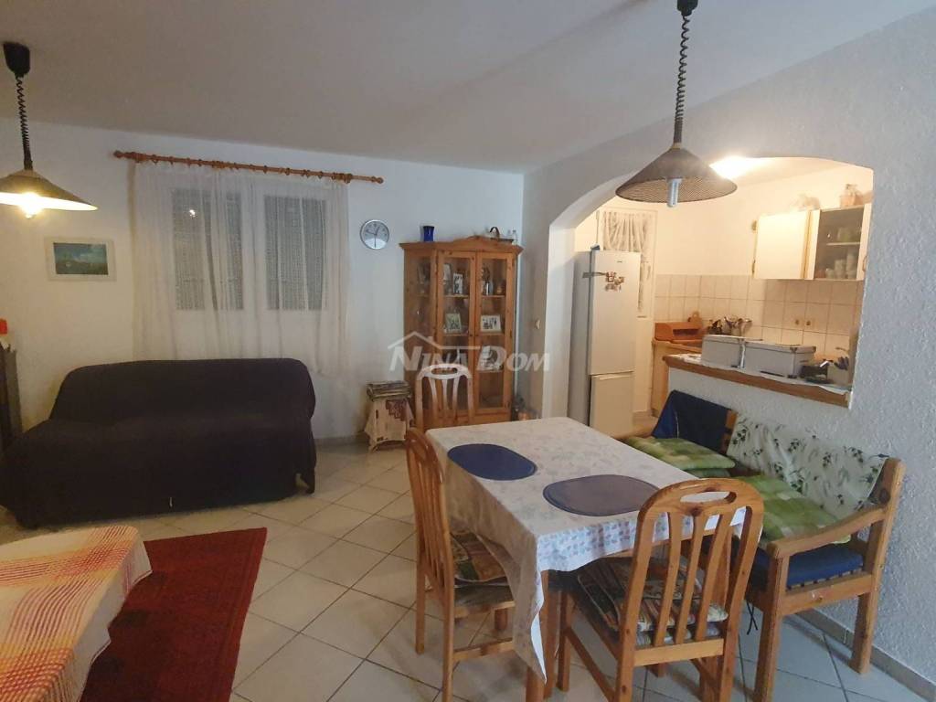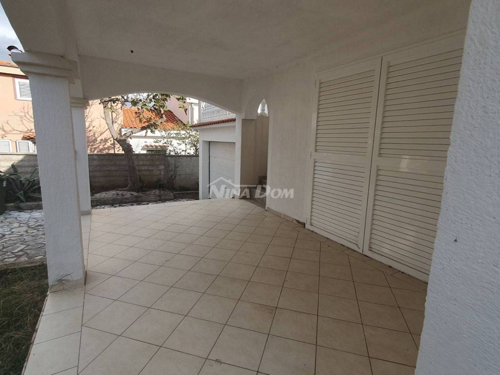 Obiteljska nekretnina s lijepom okućnicom i garažom.Nekretnina se sastoji od jedne stambene jedinice u kojoj se nalazi: natkrivena terasa, hodnik, kupaona, kuhinj s dnevnim boravkom i blagovaonicom, unutarnje stepenice s malom galerijom, kupaonom, dvije spavaće sobe i terasom. Garaža s terasom iznad garaže. Voda:bušeni bunar, struja, septička jama, Klimatizirana, za boravak preko zime posjeduje i peć na drva.od mora i plaže udaljena je 270 metara. Cijena nekrenine iznosi 330 000 Mogućnost kupnje kuće s dodatnim građevinskim zemljištem od 300 m2 tada cijena kuće i zemljišta iznosi 430 000 .