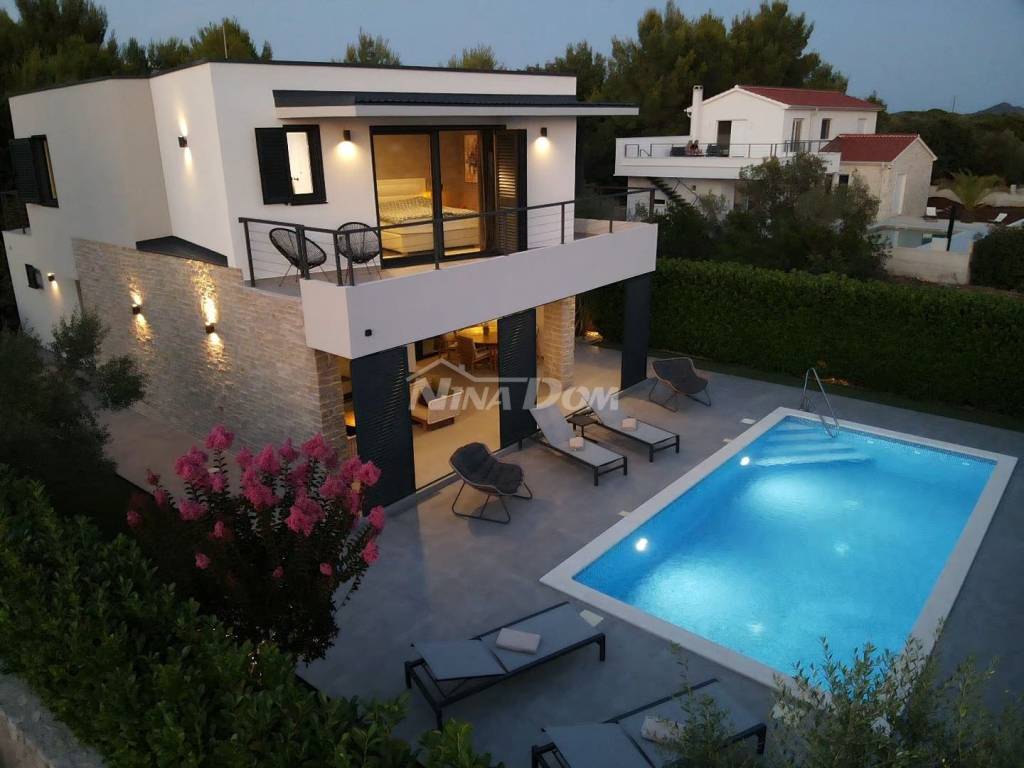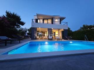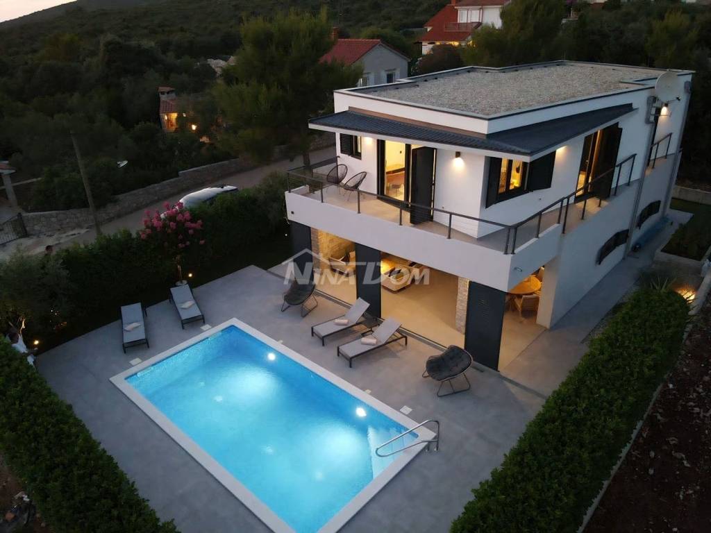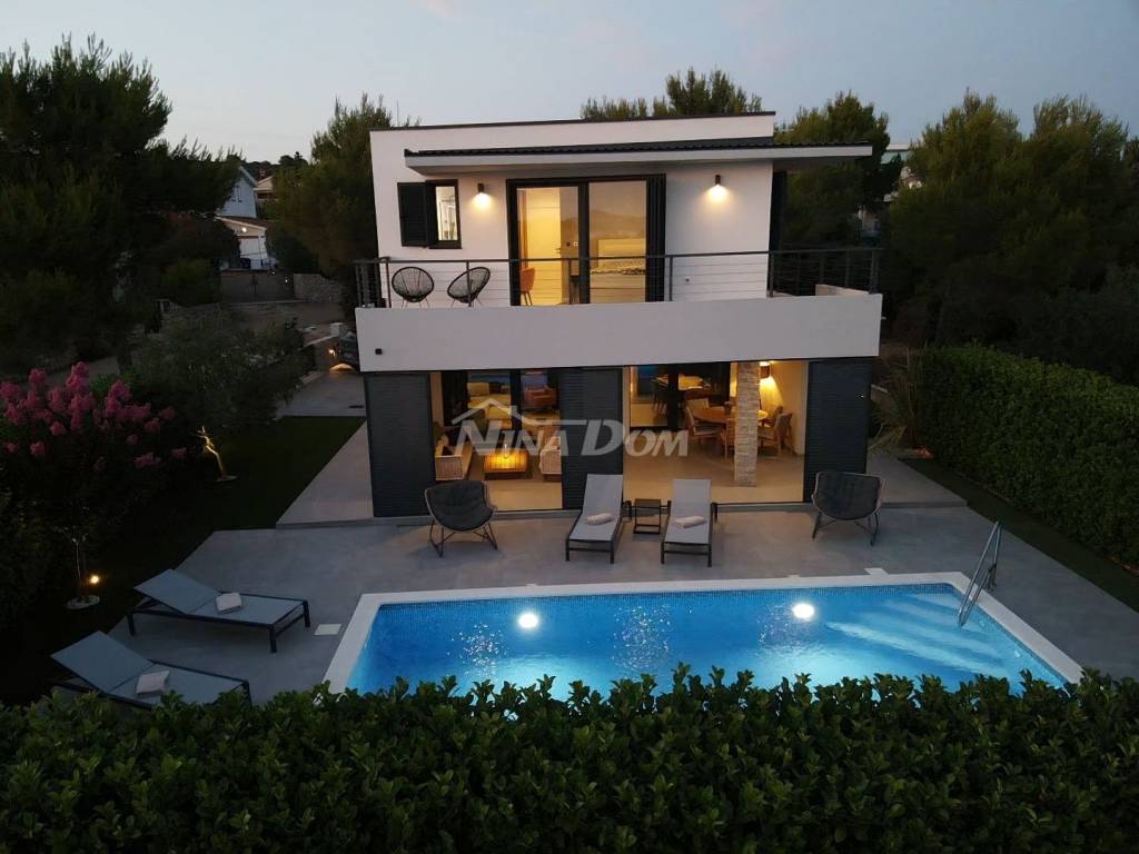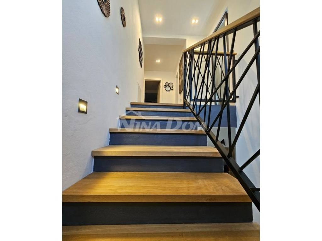 Prodaje se prekrasna kuća u mjestu Muline na otoku Ugljanu.Nalazi se na mirnoj i tihoj lokaciji,sa koje se pruža panoramski pogled na prekrasnu uvalu i otoke.Kuća je udaljena oko 200 metara od mora te ostalih sadržaja.Sastoji se od dviju etaža,dok se na dvorištu nalazi prekrasno sunćalište sa grijanim bazenom.U prizemlju se nalaze predsoblje,unutarnje stubište,gostinsko kupatilo,praona rublja,kuhinja sa blagovaonom te prekrasan dnevni boravak iz kojeg se izlazi na komfornu lođu!Na katu se nalaze 3 spavaće sobe od kojih je glavna,master soba sa svojim vlastitim kupatilom te walk inn ormarom,te prekrasne terase iz koje se pruža panoramski pogled.Na katu se još nalazi jedno zajedničko kupatilo,a valja napomenuti da svaka soba posjeduje i vlastitu terasu!Cijela kuća je opremljena podnim grijanjem,a hlađenje i grijanje su izvedeni uz pomoću klima uređaja u svakoj prostoriji.Kuća je rađena vrlo kvalitetno i vidljivo je da je svakom detalju prilikom uređenja ,posvećena velika pažnja.Muline su inače vrlo popularno odredište jer se nalaze na samom kraju,zapadu otoka Ugljana.Blizina restorana,pizzerie,trgovine te prekrasnih prirodnih plaža sa kristalno čistim morem.Valja napomenuti da je otok Ugljan izvrsno povezan,trajektnim i brodskim linijama.Za sva dodatna pitanja i obilazak stojimo vam na raspolaganju.