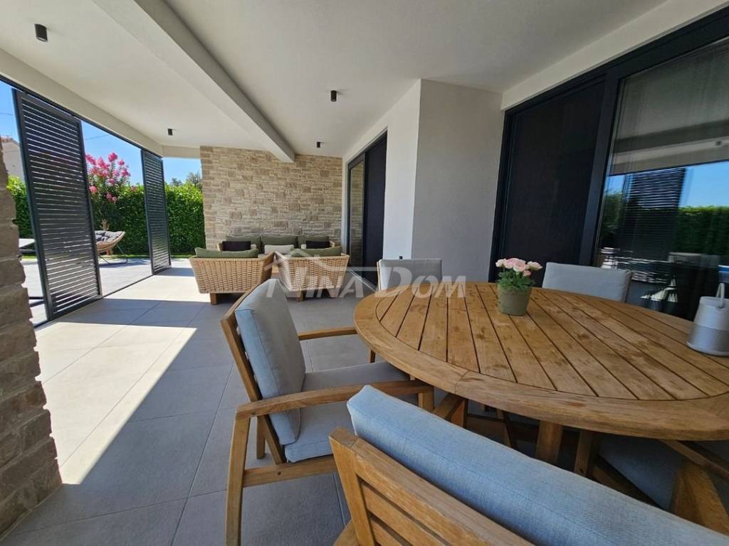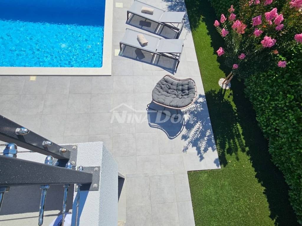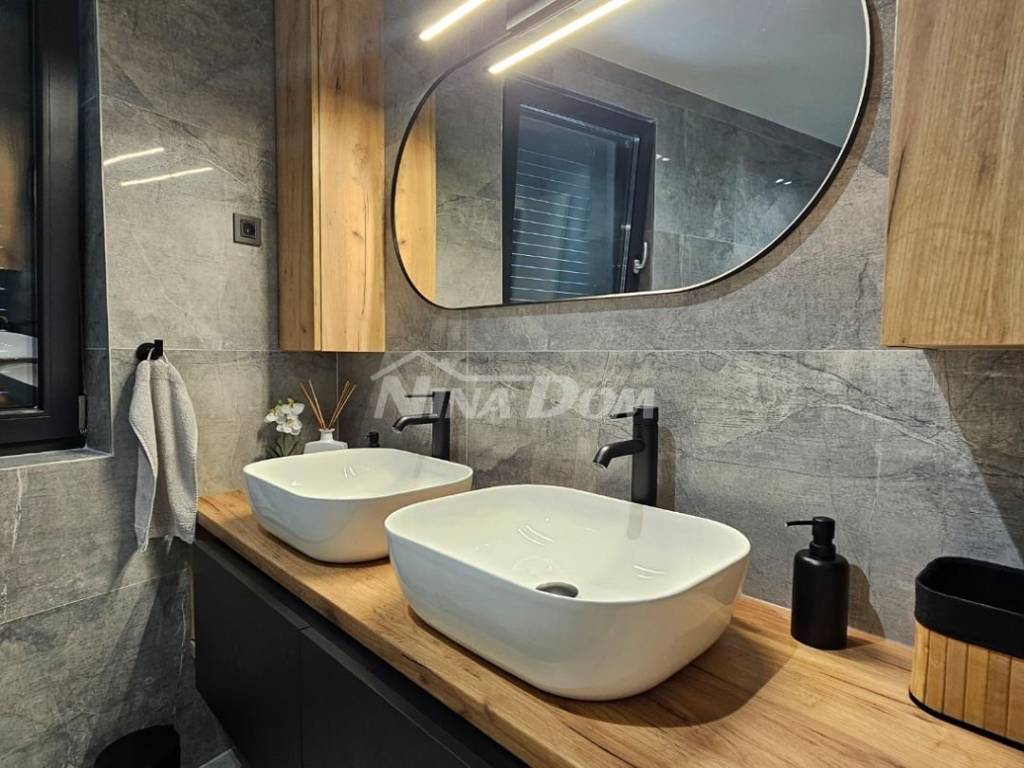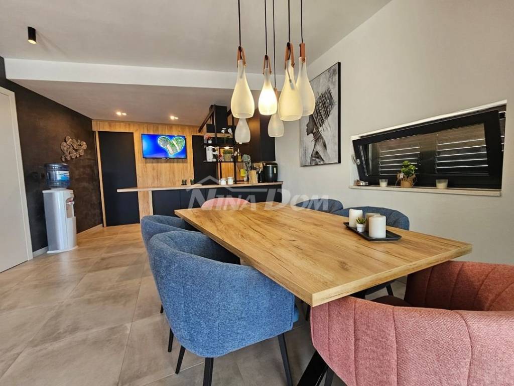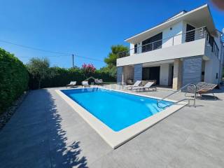 Prodaje se prekrasna kuća u mjestu Muline na otoku Ugljanu.Nalazi se na mirnoj i tihoj lokaciji,sa koje se pruža panoramski pogled na prekrasnu uvalu i otoke.Kuća je udaljena oko 200 metara od mora te ostalih sadržaja.Sastoji se od dviju etaža,dok se na dvorištu nalazi prekrasno sunćalište sa grijanim bazenom.U prizemlju se nalaze predsoblje,unutarnje stubište,gostinsko kupatilo,praona rublja,kuhinja sa blagovaonom te prekrasan dnevni boravak iz kojeg se izlazi na komfornu lođu!Na katu se nalaze 3 spavaće sobe od kojih je glavna,master soba sa svojim vlastitim kupatilom te walk inn ormarom,te prekrasne terase iz koje se pruža panoramski pogled.Na katu se još nalazi jedno zajedničko kupatilo,a valja napomenuti da svaka soba posjeduje i vlastitu terasu!Cijela kuća je opremljena podnim grijanjem,a hlađenje i grijanje su izvedeni uz pomoću klima uređaja u svakoj prostoriji.Kuća je rađena vrlo kvalitetno i vidljivo je da je svakom detalju prilikom uređenja ,posvećena velika pažnja.Muline su inače vrlo popularno odredište jer se nalaze na samom kraju,zapadu otoka Ugljana.Blizina restorana,pizzerie,trgovine te prekrasnih prirodnih plaža sa kristalno čistim morem.Valja napomenuti da je otok Ugljan izvrsno povezan,trajektnim i brodskim linijama.Za sva dodatna pitanja i obilazak stojimo vam na raspolaganju.