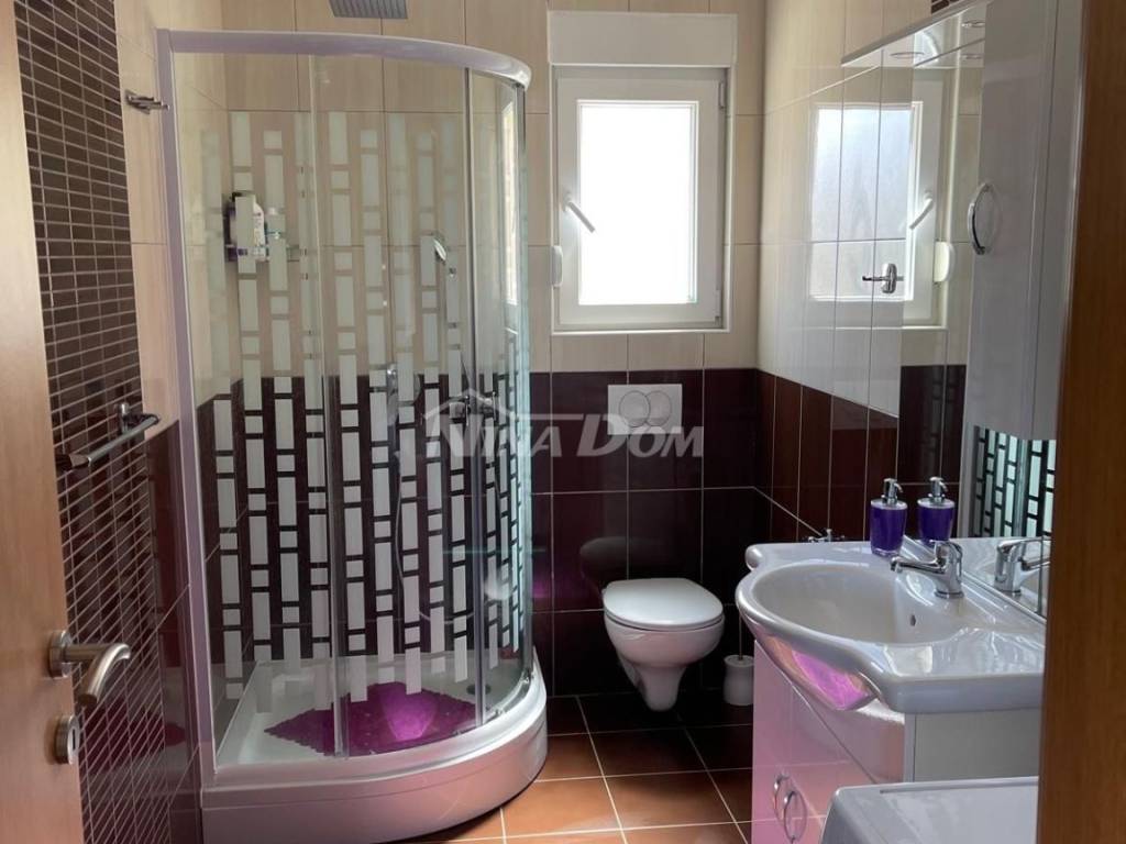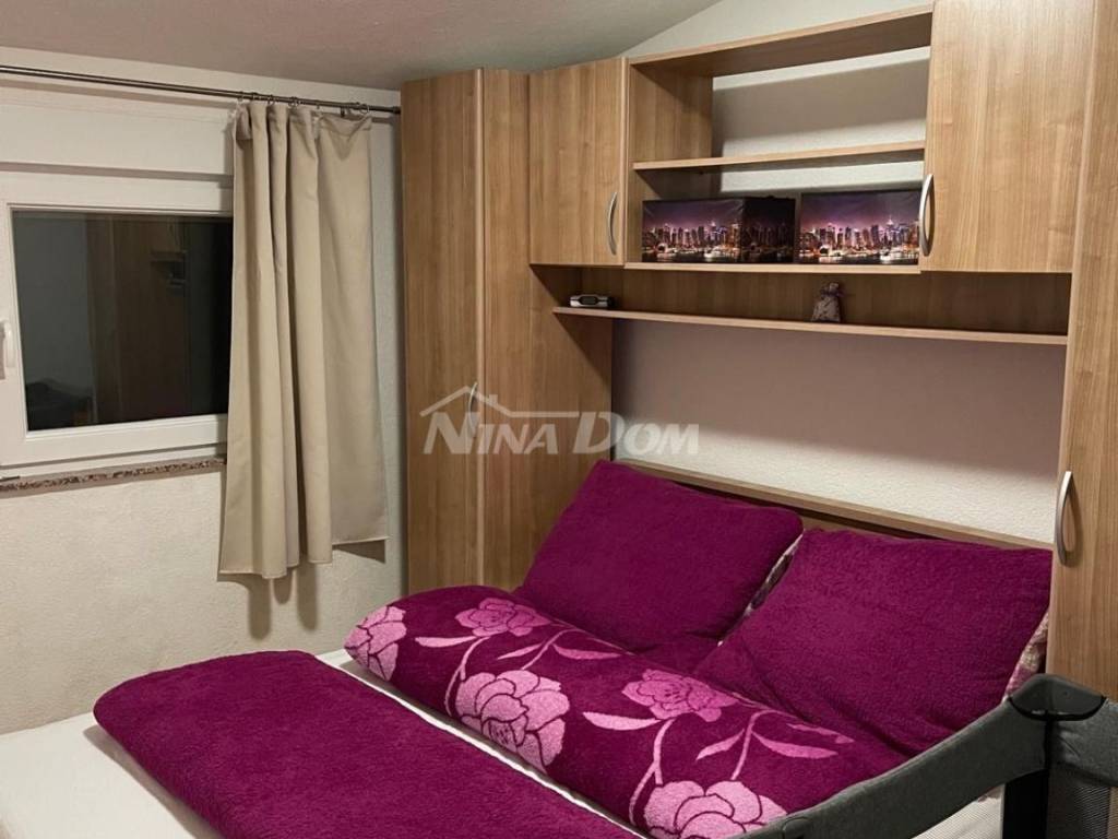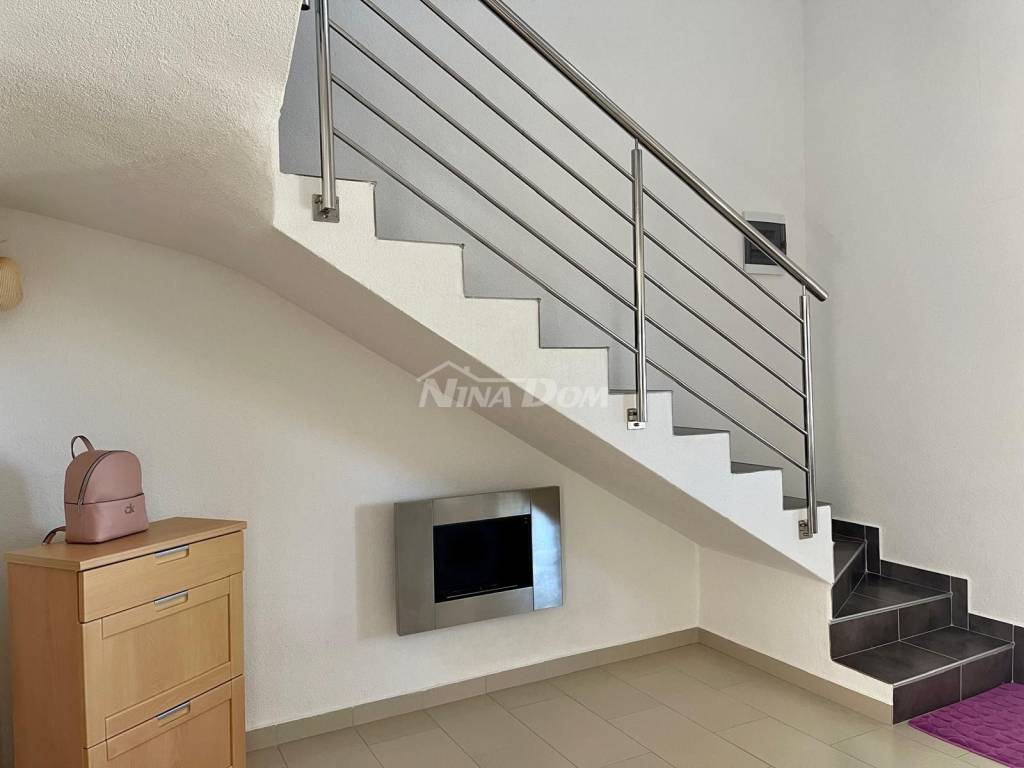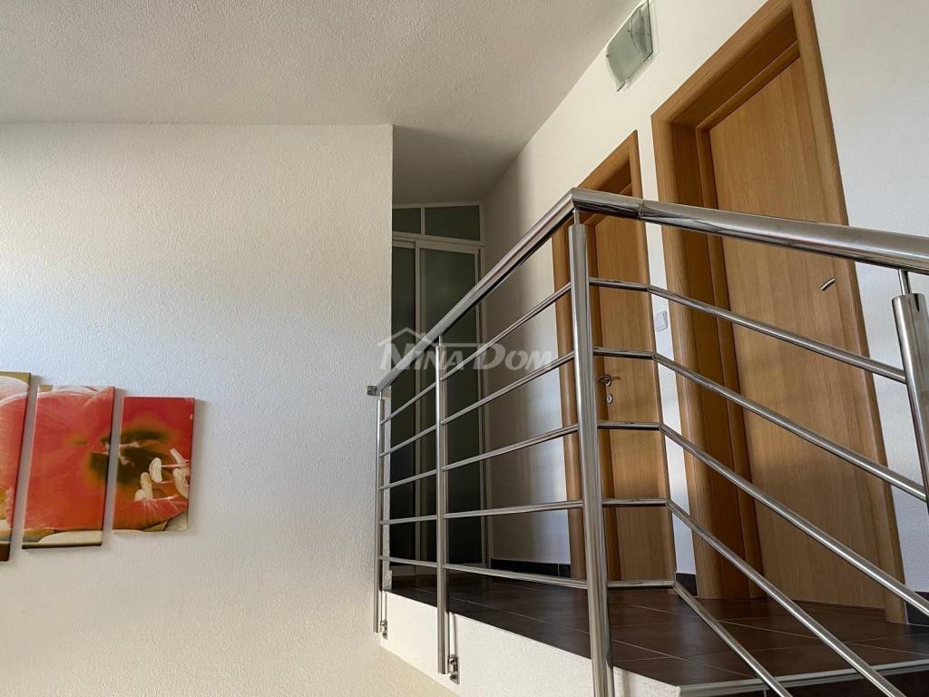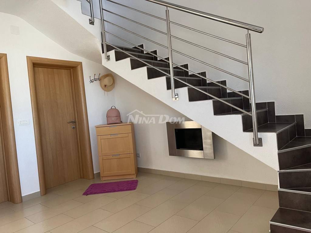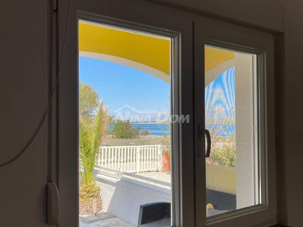 Nekretnina u nizu s prostranom okućnicom udaljena svega 100 metara do mora i plaže. Nekretnina se sastoji od prizemlja i kata; prizemlje: natkrivena terasa, dnevni boravak, kuhinja s izlazom u zadnji dio dvorišta, ostava, kupaona, unutarnje stepenice. na katu dvije spavaće sobe i kupaona. Korisne površine po etažnom elaboratu 73.35 m2 Kompletno opremljena i kao takva se prodaje. Okućnica prostarana, popločana s dijelom zelenila. 203.61 m2. Voda Bušeni bunar, struja,