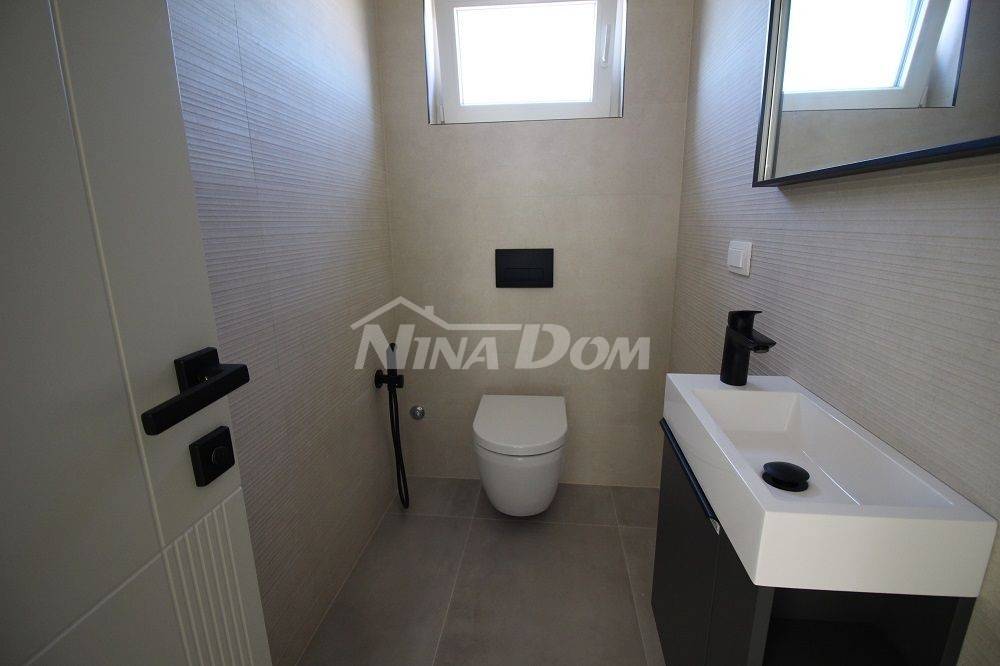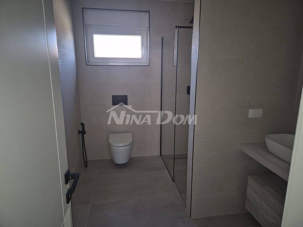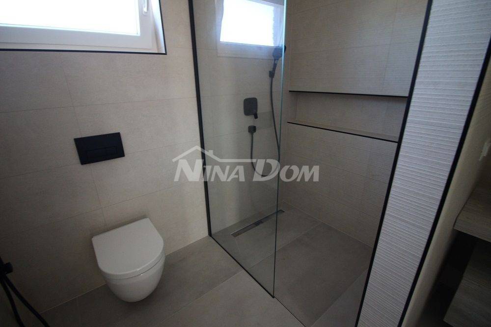U ponudi su tri apartmana potpuno identični, opremljeni hans grohe sanitarijama, ratificirane dizajnerske talijanske pločice, protuprovalnim vratima, roletne električne, komarnici na svim otvorima, klima uređaji u svim sobama i dnevnom boravku. Podna grijanja u cijelom apartmanu s paljenjem preko wf mreže.