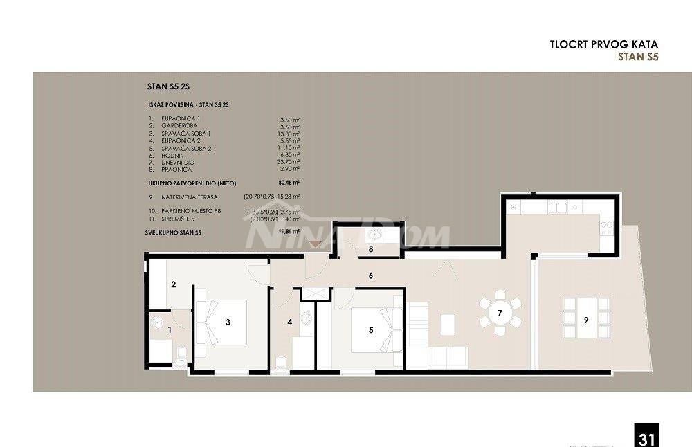 Apartmanu pripada parkirno mjesto P8 13.75 m2
