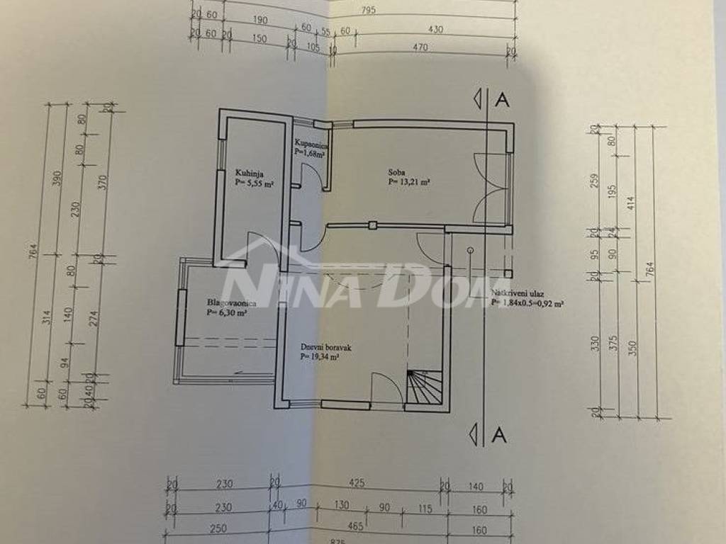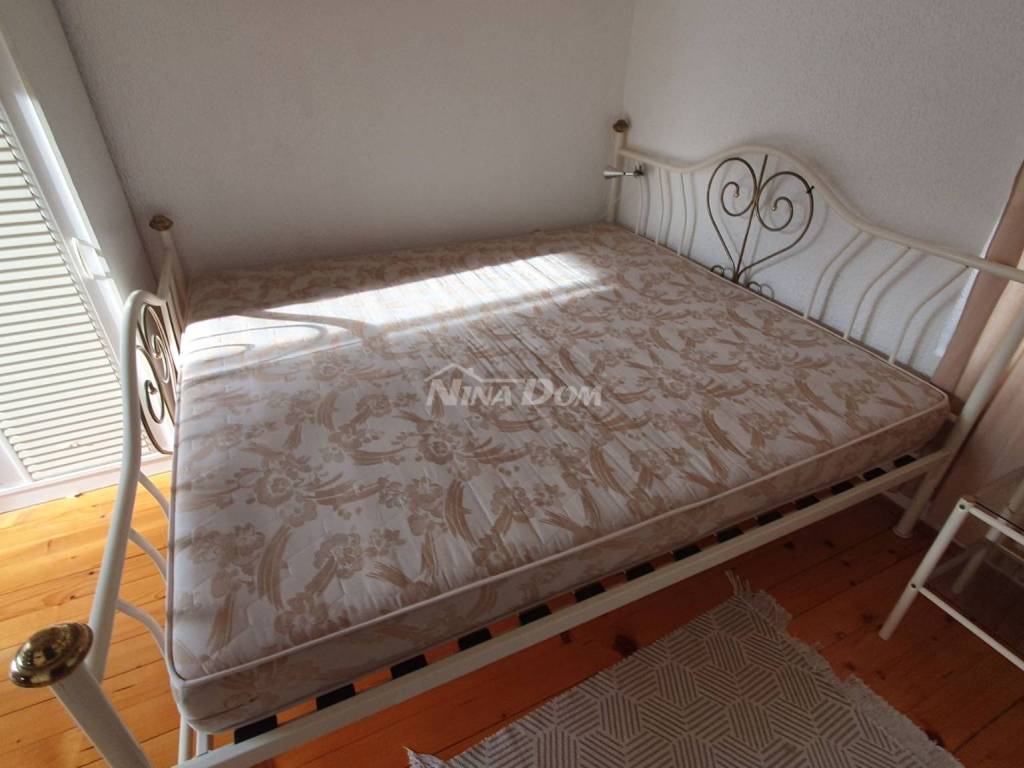 Južna strana otoka Vira, samostojeća nekretnina tlocrtnih dimenzija 8,75 x 7.64 met sastoji se od prizemlja i kata u kojoj se nalazi jedna stambena jedinica 85 m2 stambene površine. Sastoji se od: natkrivenog ulaza, dnevnog boravka, kuhinje, blagovaonice, kupaone, spavaće sobe. umutarnje stepenice za kat: Kat: galerija koja se sastoji od dvije spavaće sobe, kuapone i terase. Klimatizirana, električni radijatori za boravak u zimskim mjesecima. Nekretnina je spojena na gradski vodovod i kanalizaciju. Ispred kuće parking za jedno vozilo. Iza kuće uređeno lijepo dvorište popločano i uređeno. Od mora i plaže udaljena je 200 metara. Pekarnica, trgovina u neposrednoj blizini.