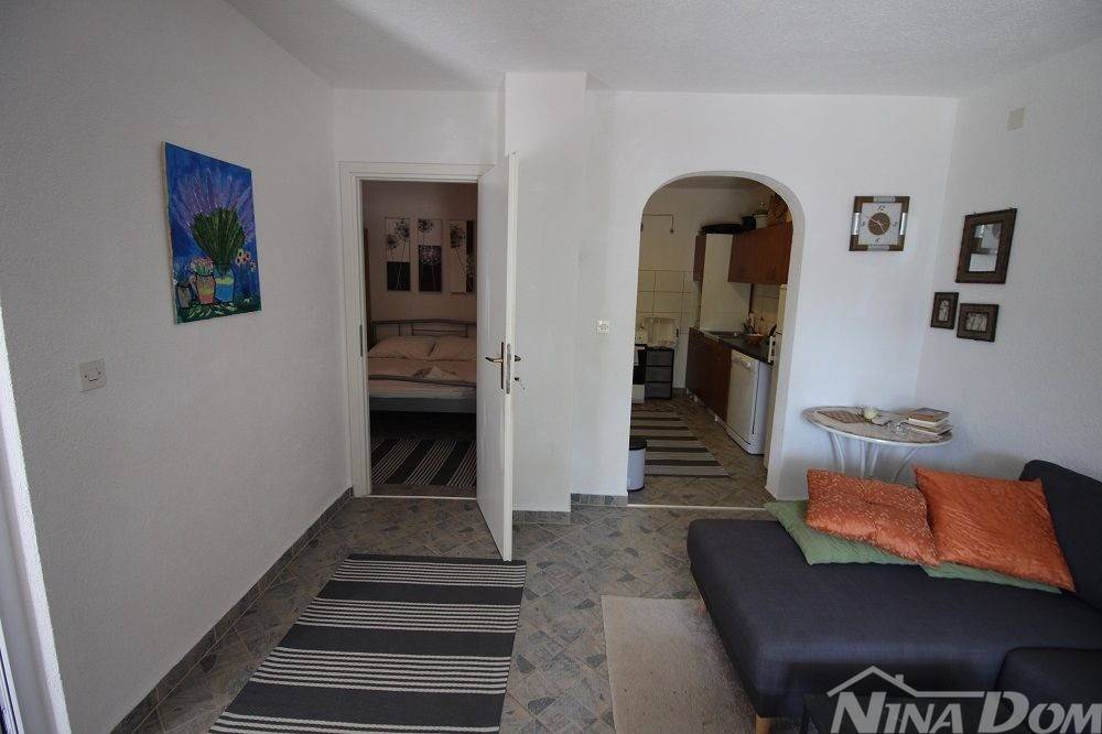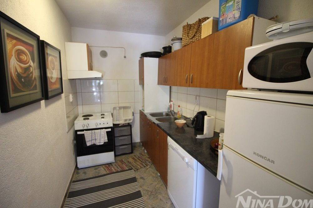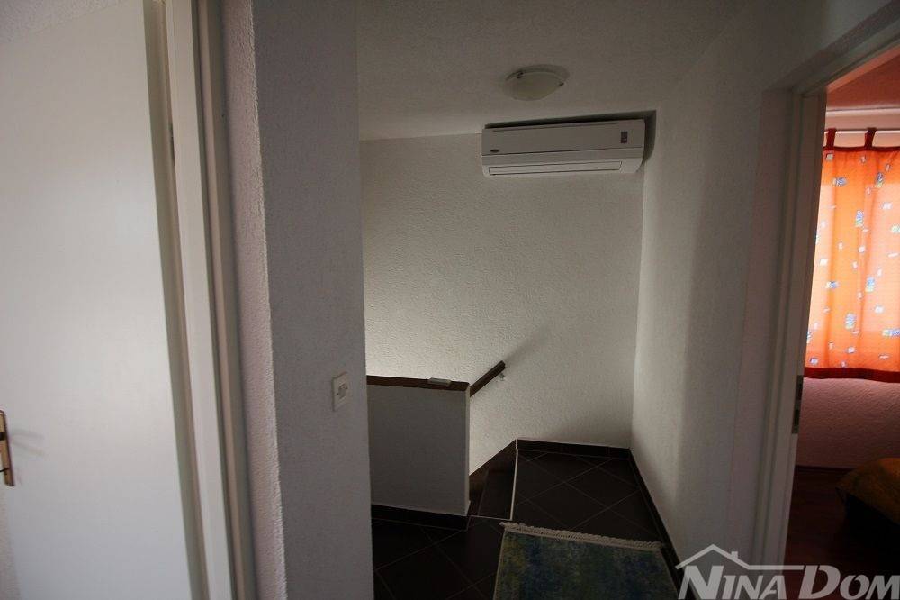 Južna strana otoka Vira, sastoji se od prizemlja i kata, Prizemlje: hodnik, kuhinja, dnevni boravak, jedna spavća soba s kupaonicom, terasa. Unutarnje stepenice za kat: na katu 3 spavaće sobe, kupaona, hodnik, balkon. U jednoj spavaćoj sobi ostavljene su instalacije dovoda i odvoda za kuhinjske elemente jer je moguće nekretninu koristiti i kao dvije odvojene jedinice. Klimatizirana, okućnica uređena s kaminom. Spojena na gradski vodovod i kanalizaciju. Od mora i plaže udaljena je 300 metara.