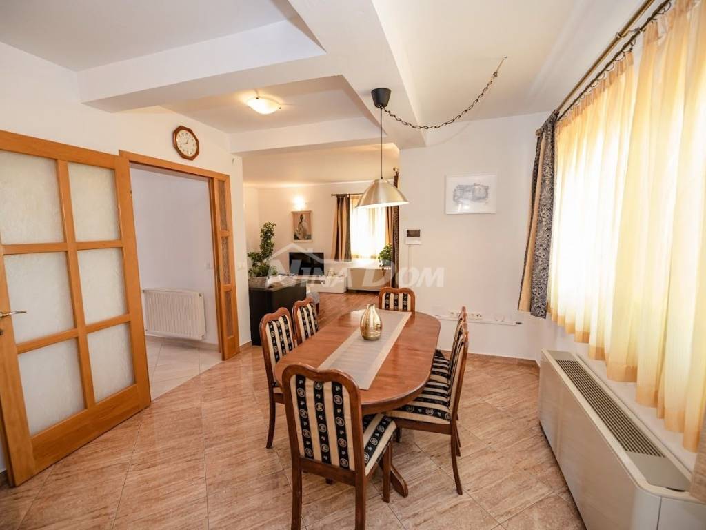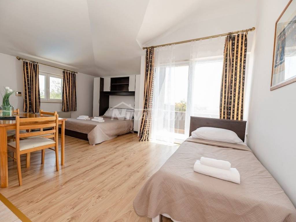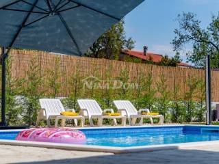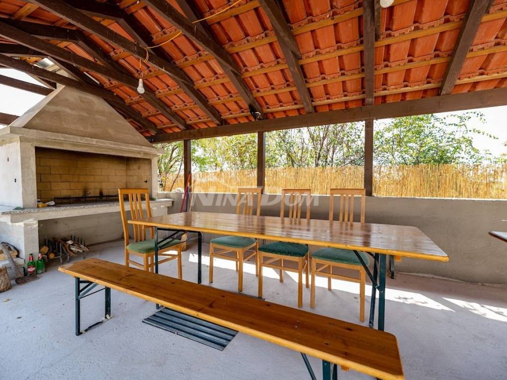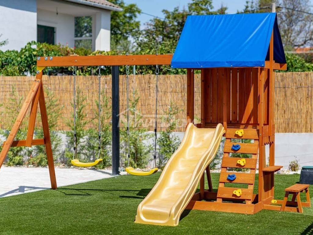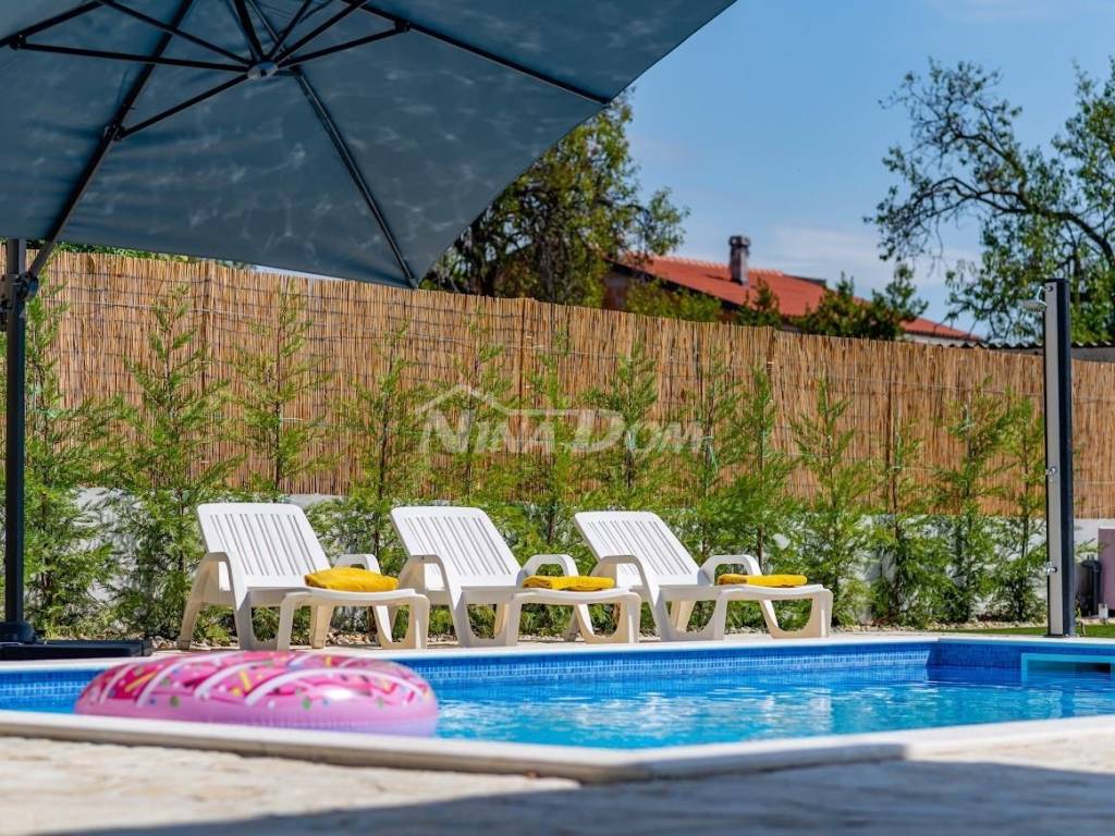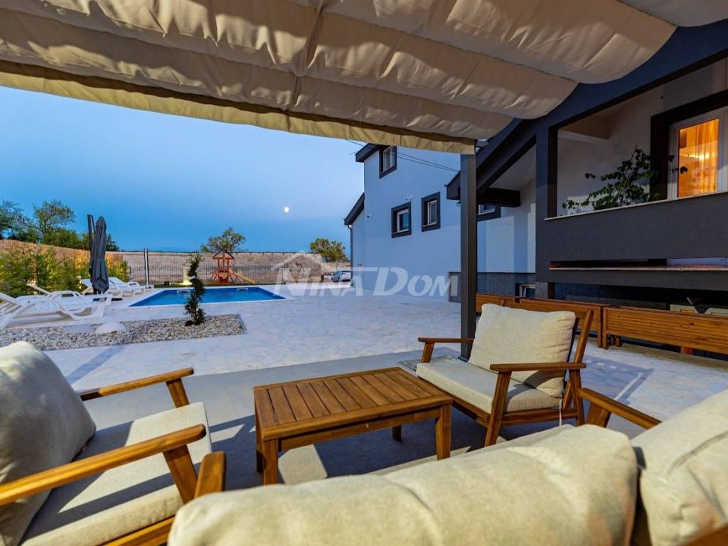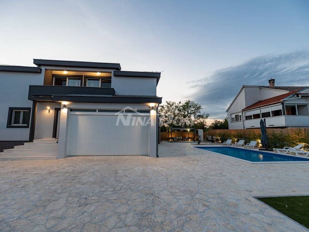 Prodaje se komforna kuća za odmor. Kuća je projektirana na način da se može koristiti kao obiteljska kuća, ali i kao apartmanska kuća, sa 4 studio apartmana i jednim komfornim trosobnim apartmanom.Kuća se sastoji od podruma u kojem se nalazi rustikalno uređena konoba sa vinotekomprizemlja s trosobnim komfornim stanom sa dva balkona, kat sase 4 studio apartmana. Svaki apartman ima balkon. Kuća ima video nadzor, alarmni sustav, solarno zagrijavanje vode, daikin air-condition, električna vrata za garažu i dvorišna vrata, gusternu za pričuvnu vodu, agregat za struju, centralni usisavač, grijani bazen, automatsku strojarnicu, robot za čišćenje bazena. Kuća je idealna za miran obiteljski život, ali i za turistički najam, obzirom da se nalazi svega 2 km od aerodroma ( moguć najam pilotima ) 10km od Zadra i 3 km od zračne luke. Moguća zamjena