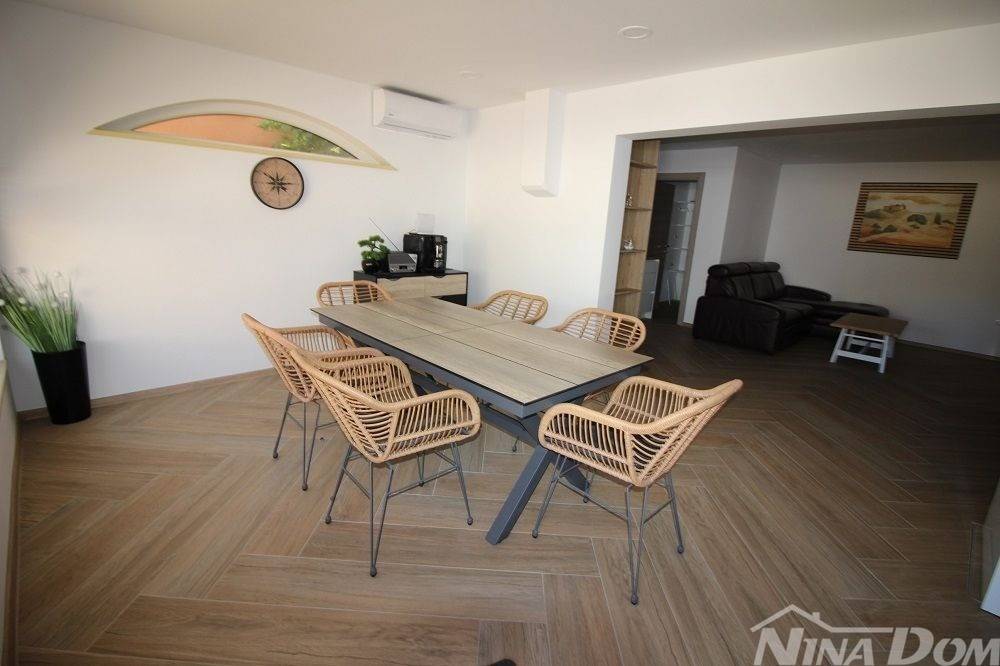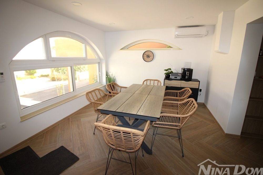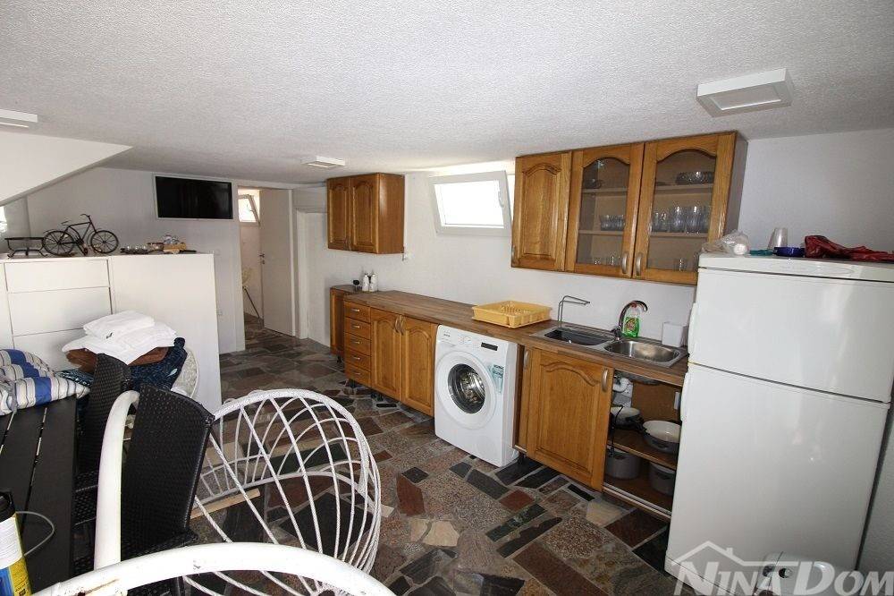 Lijepo uređena visokoprizemnica kompletno novo renovirana 70 metara do mora i plaže. Sastoji se od garažnog dijela u kome se nalazi pomoćna ljetnja kuhinja, jedna spavaća soba i kupaonica. Glavni dio kuće sastoji se od Lodje, velikog dnevnog boravka, kuhinje s ostavom, dvije spavaće sobe, kupaone. Nekretnina posjeduje dimnjak, električno podno grijanje, klima uređaje. Opremljena je kompletno. Voda-cisterna 17 m3., struja, septička jama. More i plaža udaljeni su 70 metara (pješačka staza do mora)