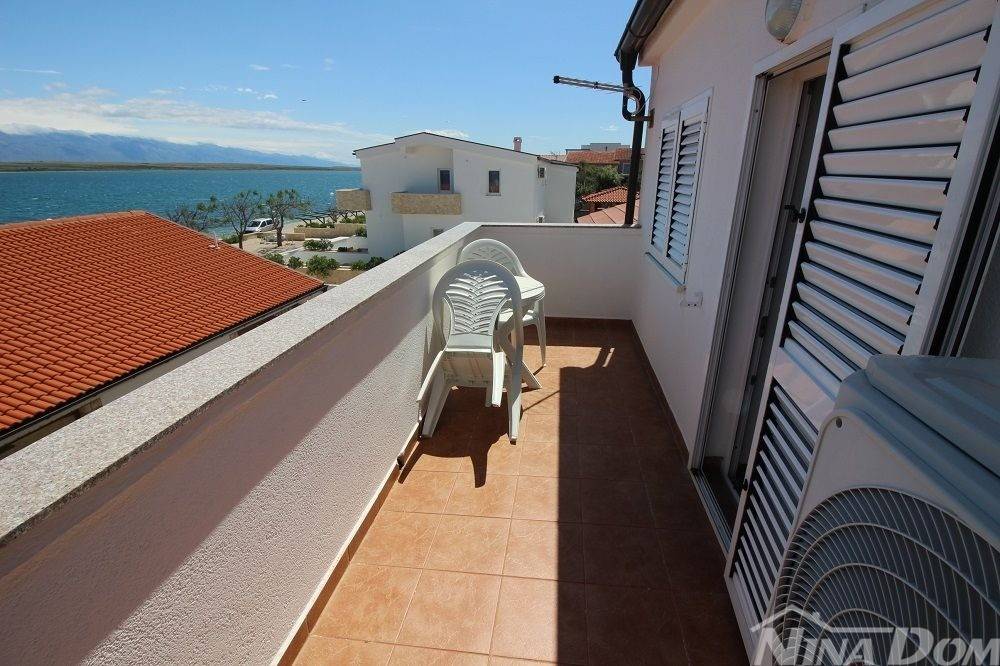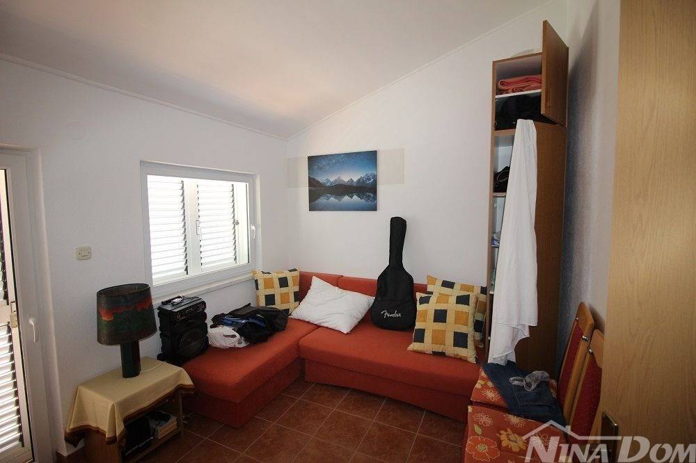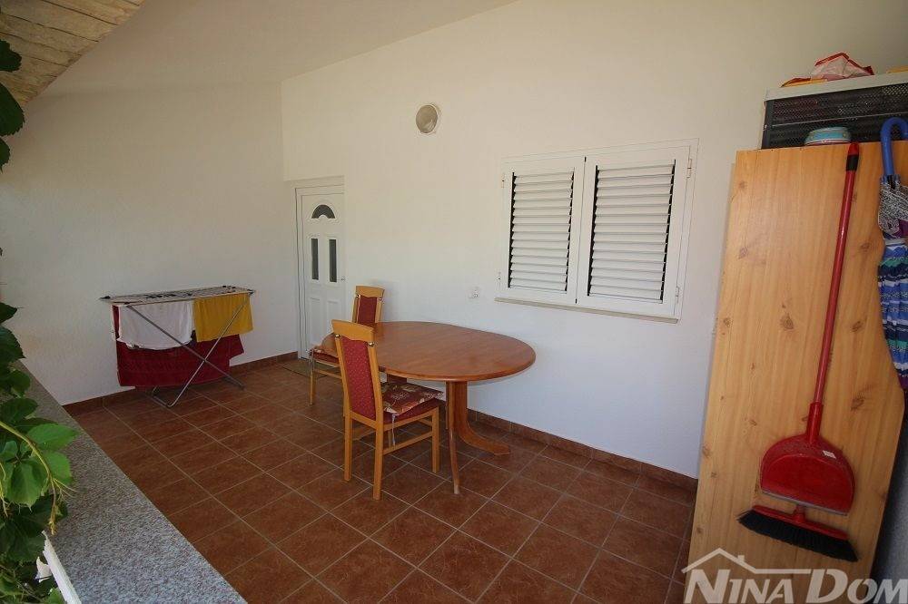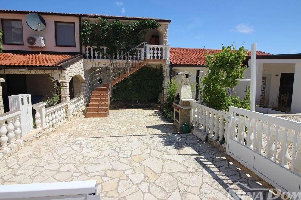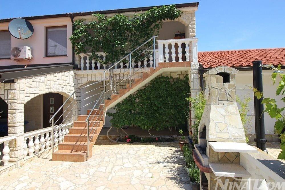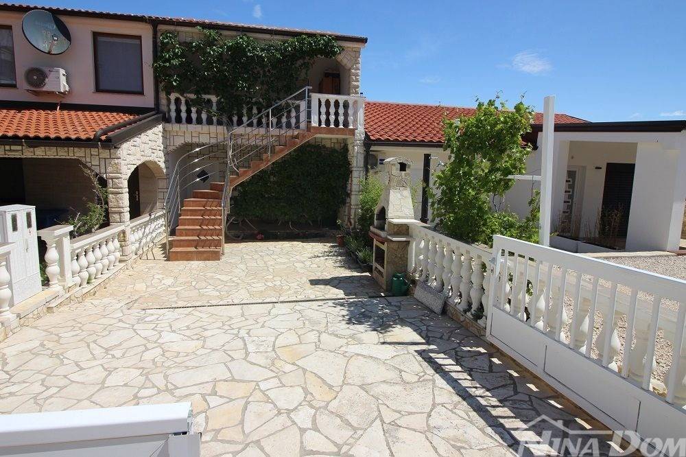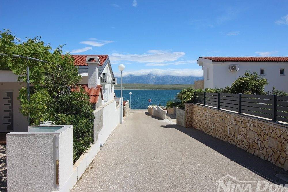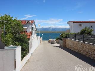 Kuća u nizu koja se sastoji od dva etažirana jednosobna apartmana. Svaki apartman posjeduje prednju terasu, kuhinju s dnevnim boravkom, kupaonu i jednu spavaću sobu sa izlazom na zadnje terase,. Nekretnina je udaljena 60 metara od mora i sa gornje terase pruža se neometani pogled na more i Velebit. Dobro održavana 2022 godine urađena je nova fasada 8 cm stiropora, klima uređeju postavljeni u prizemlju i na katu, voda-cisterna, struja samostalni prikljčak.