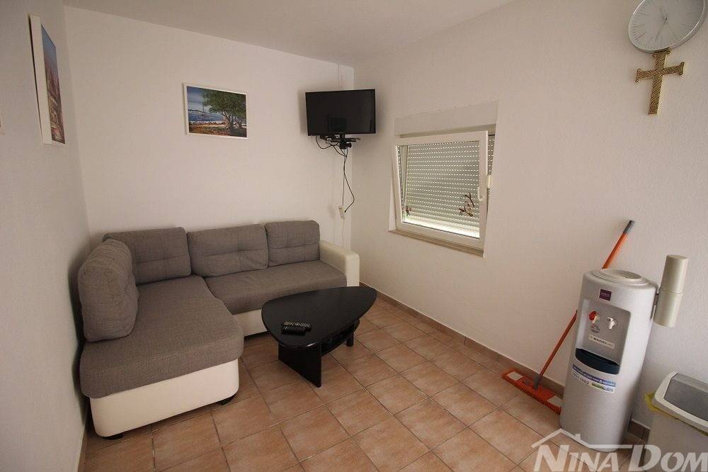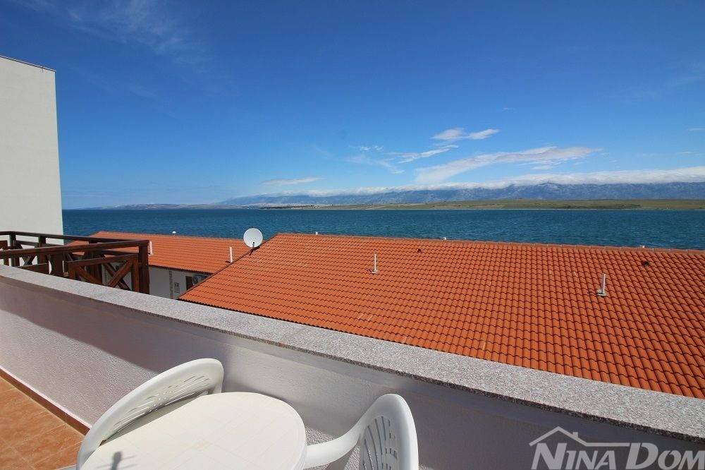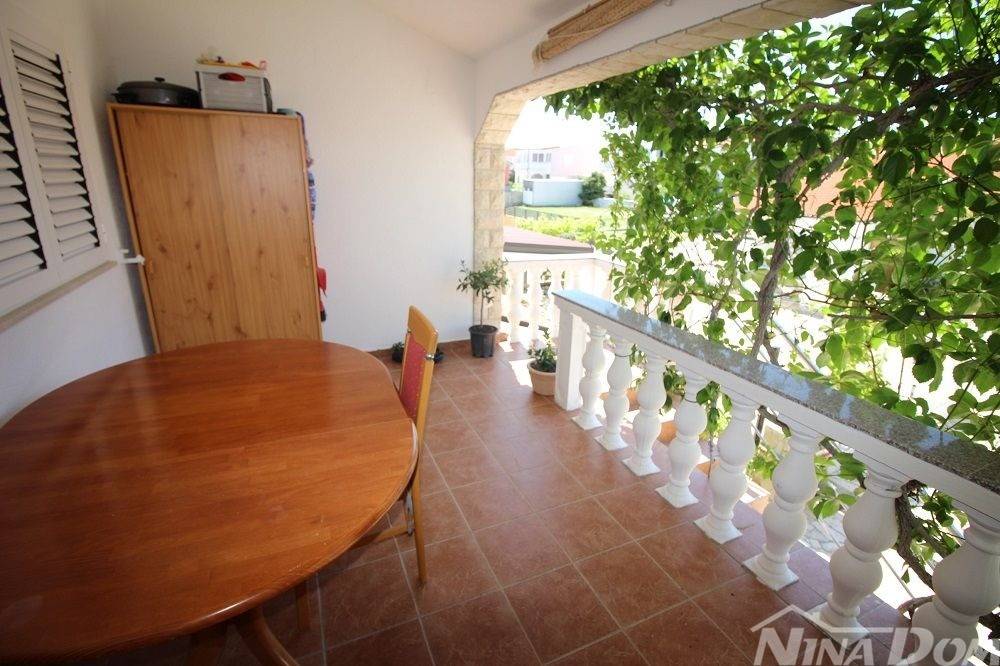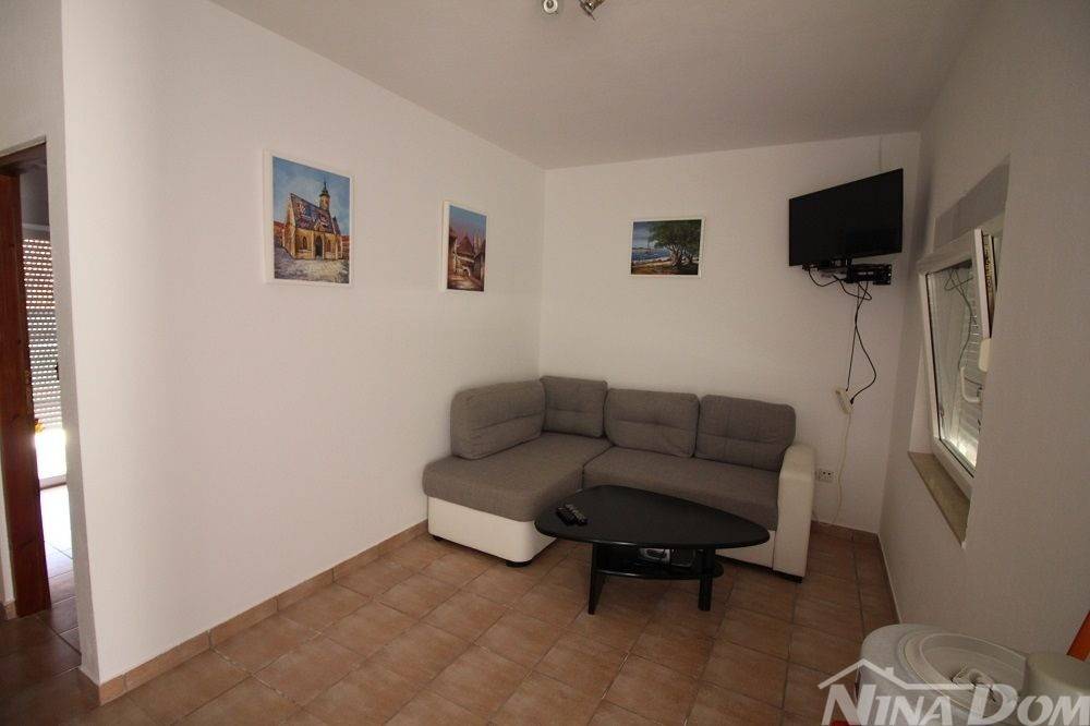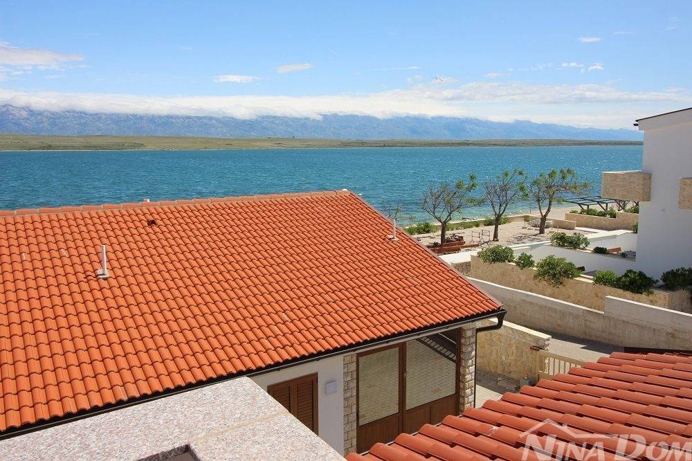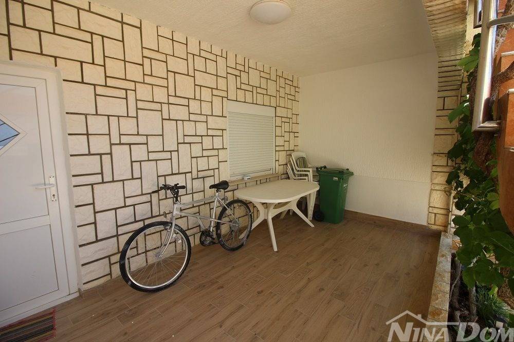 Kuća u nizu koja se sastoji od dva etažirana jednosobna apartmana. Svaki apartman posjeduje prednju terasu, kuhinju s dnevnim boravkom, kupaonu i jednu spavaću sobu sa izlazom na zadnje terase,. Nekretnina je udaljena 60 metara od mora i sa gornje terase pruža se neometani pogled na more i Velebit. Dobro održavana 2022 godine urađena je nova fasada 8 cm stiropora, klima uređeju postavljeni u prizemlju i na katu, voda-cisterna, struja samostalni prikljčak.