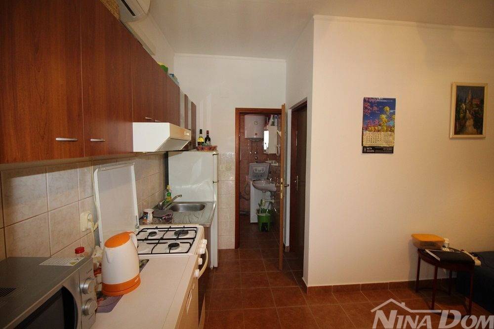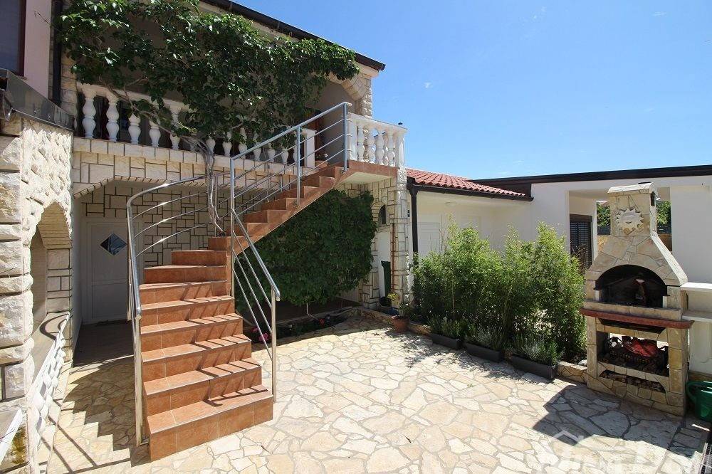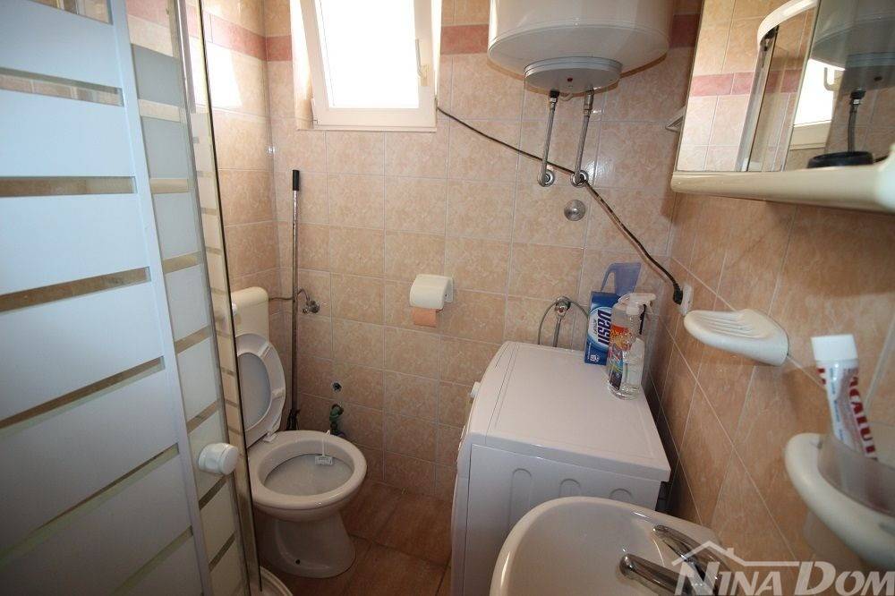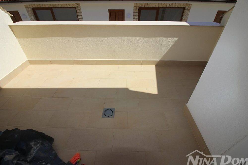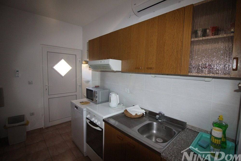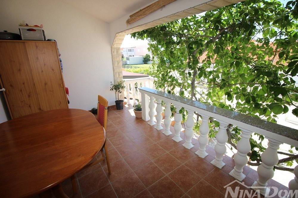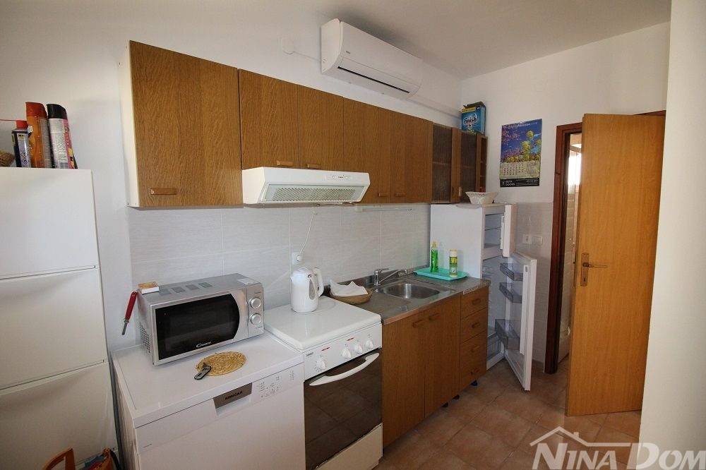 Kuća u nizu koja se sastoji od dva etažirana jednosobna apartmana. Svaki apartman posjeduje prednju terasu, kuhinju s dnevnim boravkom, kupaonu i jednu spavaću sobu sa izlazom na zadnje terase,. Nekretnina je udaljena 60 metara od mora i sa gornje terase pruža se neometani pogled na more i Velebit. Dobro održavana 2022 godine urađena je nova fasada 8 cm stiropora, klima uređeju postavljeni u prizemlju i na katu, voda-cisterna, struja samostalni prikljčak.