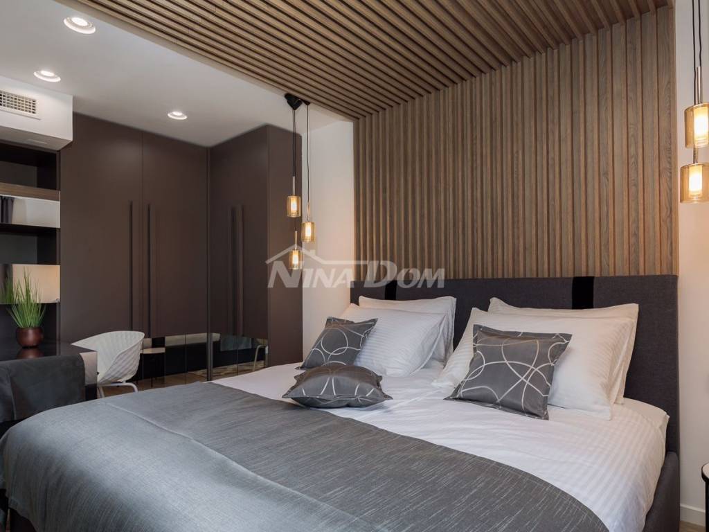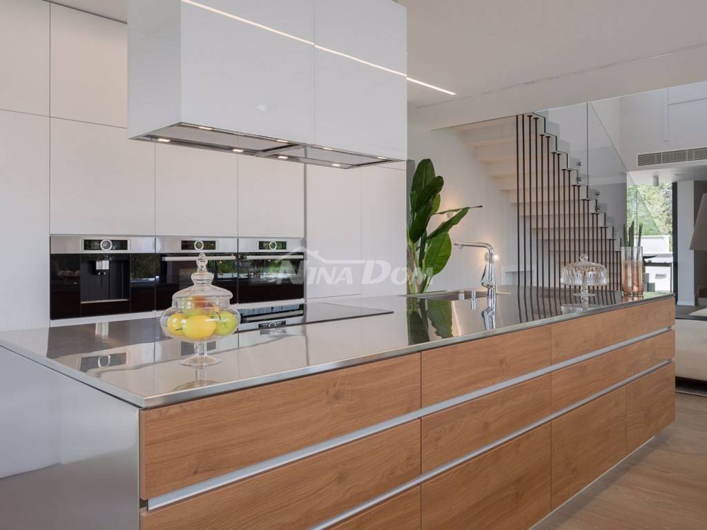 Vila se nalazi u turističkom i povezanom dijelu grada - Diklu, koji je udaljen nekoliko kilometara od stoljetnog grada, a 600 metara od prekrasnih plaža, savršenih za obitelji s djecom, s brojnim dodatnim rekreacijskim i sportskim sadržajima.Ova luksuzno uređena Villa ima 453 m2 i sastoji se od 5 spavaćih soba opremljenih walk-in ormarima, smart TV-om i zvučnicima za kontrolu razglasa, 3 odvojena WC-a i 5 en-suite kupaonica od kojih su dvije opremljene kadom. , sa tuš kabinama. Kuhinja vile je potpuno opremljena s blagovaonicom, predviđenom za 10 osoba, koja je povezana s konobom koja također može primiti 10 osoba. U modernom dnevnom boravku opremljenom Hi-Fi sustavom i Smart TV-om možete uživati u odmoru s društvom ili obitelji nakon aktivnog dana, a ako radite i putujete, u dnevnom boravku se nalazi radna soba koja će vam pružiti uz mirnu radnu atmosferu. Posebna ponuda vile uključuje teretanu, saunu i jacuzzi. U dvorištu se nalazi prekrasan bazen od 48 m2 opremljen mlaznicama za grijanje i hlađenje. Cijela Villa je ograđena visokim zidom, tako da Vam jamči mir i privatnost.Veličina zemljišta na kojem se nalazi vila je 1116m2.