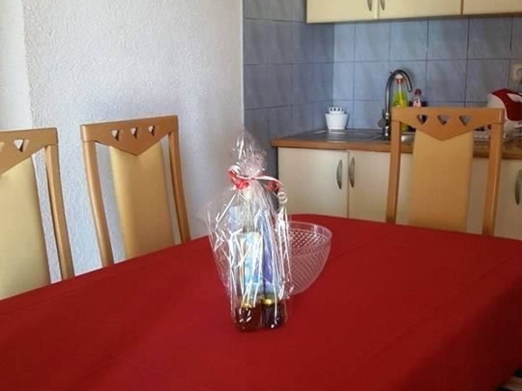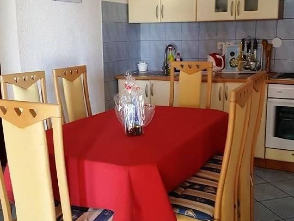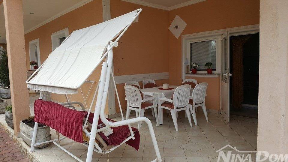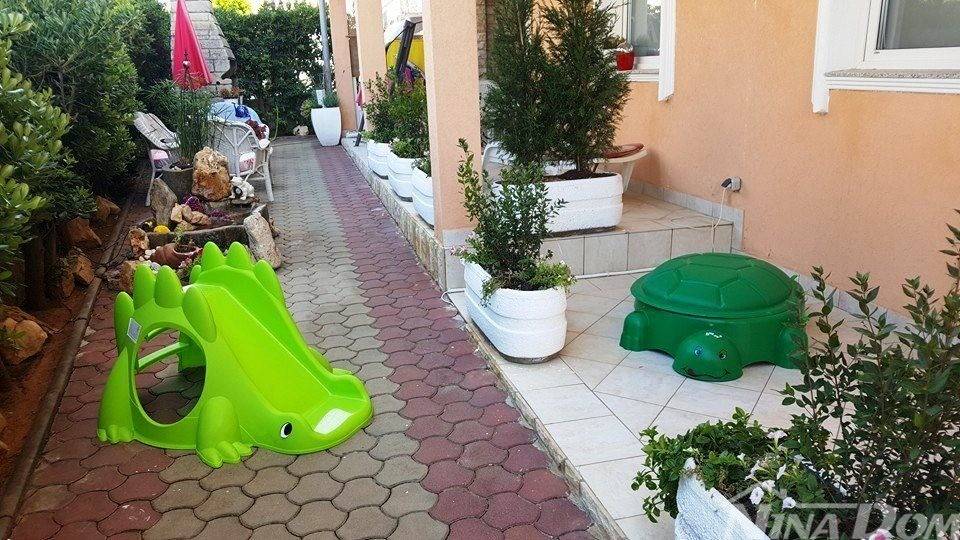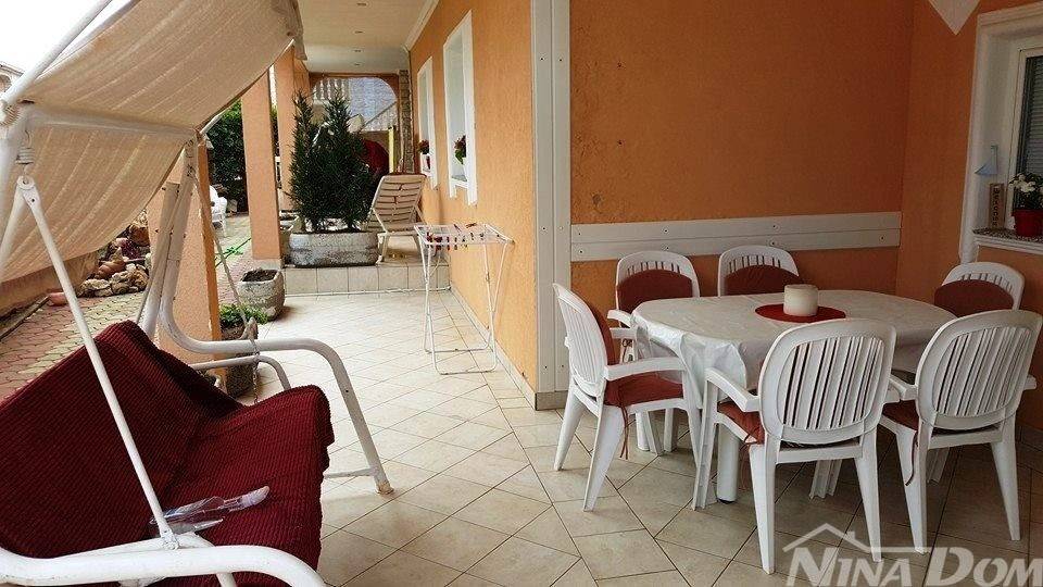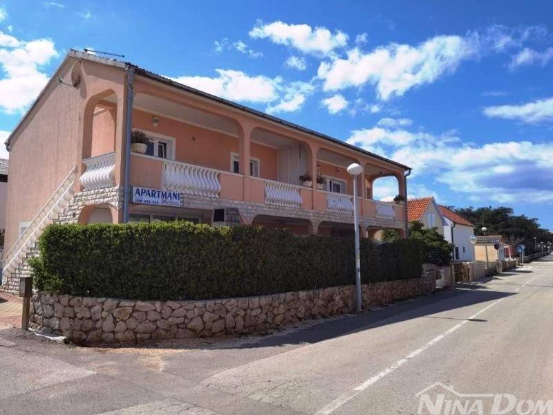 Nekretnina koja se sastoji od prizemlja i kata. Prizemlje: dva apartmana od kojih svaki ima dvije spavaće sobe, kuhinja s dnevnim boravkom, kupaona i terasa. Vanjske stepenice za kat: na katu 4 apartmana od kojih svaki ima jednu spavaću sobu, kuhinju s dnevnim boravkom, kupaona i terasa. Nekretnina je klimatizirana, uredno održavana 2021 godine stavljena nova termo fasada. Voda-bušeni bunar, struja, Od mora i plaže udaljena 180 metara. prodaje se sa stvarima. (osim osobnih stvari prodavatelja)