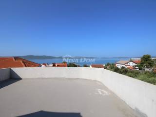 Prodaje se kuća na mirnoj lokaciji 100 m od uređene plaže sa velikim dvorištem i pogledom na more i otoke. Sastoji se od podruma, suterena na kojem se nalaazi jednosoban veliki stan, prizemlja na kojem je studio apartman, visokog prizemlja na kojem je još jedan jednosoban stan, prvog kata na kojem se nalazi dvoetažni stan od 160 m2 sa izlazom na krovnu terasu. Grijanje je izvedeno uz pomoć ....