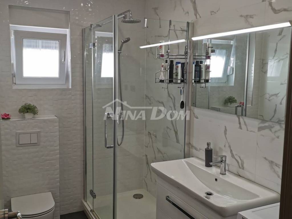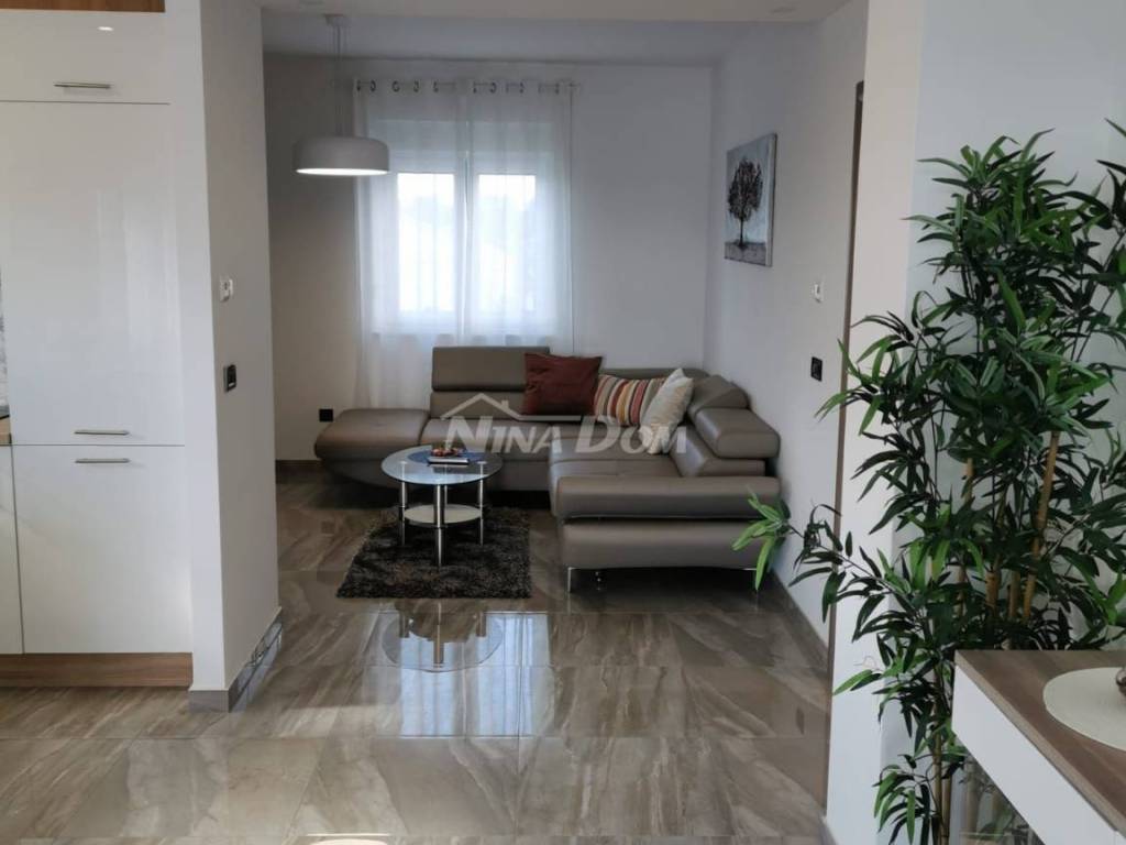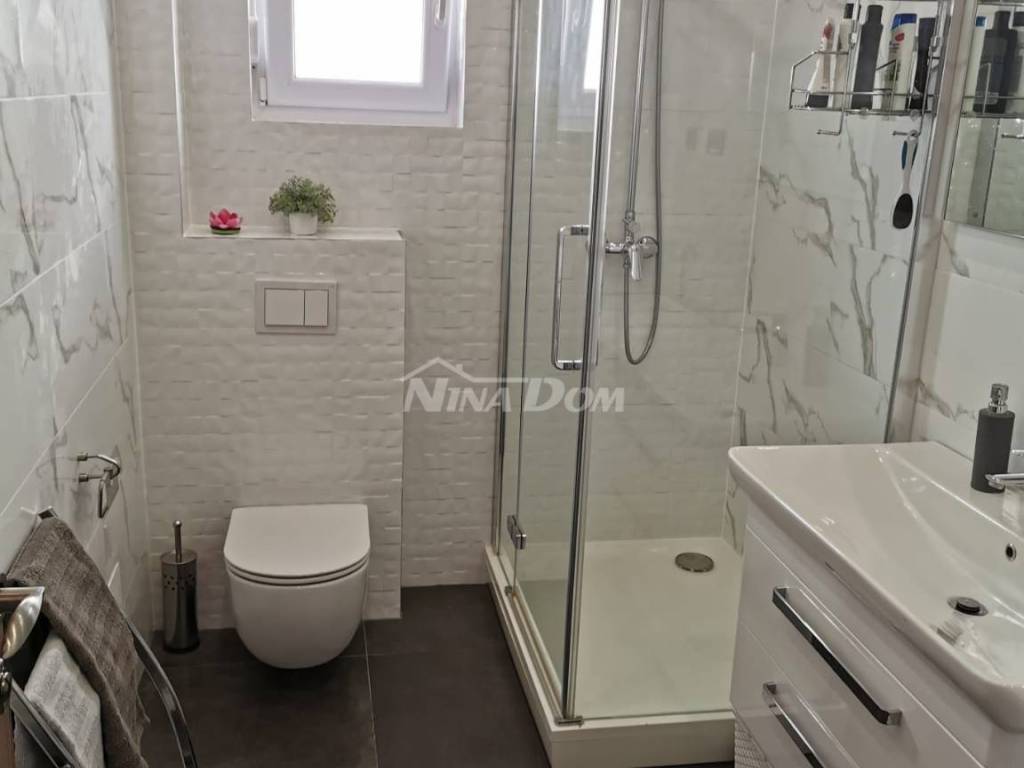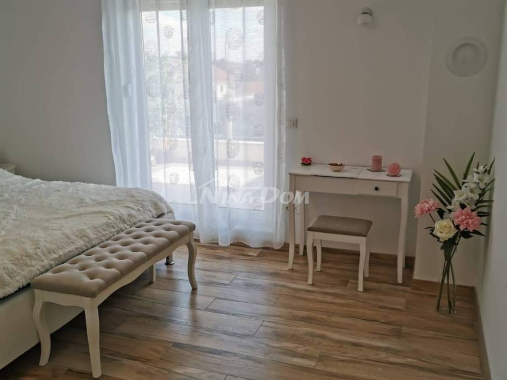 Apartman, jako lijepo opremljen, smješten na drugom katu zgrade koja se nalazi u centru otoka Vira s prekrasnim pogledom na glavnu plažu Jadro. Sastoji se od tri spavaće sobe, kupaone, wc, hodnika, kuhinje s blagovaonicom, dnevnim boravkom, velikom terasom s pogledom na more. Nekretnina je klimatizirana, za boravak preko zime-podno grijanje. Spojen je na gradski vodovod i kanalizaciju. Kompletno opremljena i namještena. Apartmanu pripada i dva parkirna mjesta.
